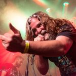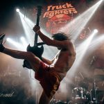 Tras un rápido cambio de backline, pisaban las tablas con un mensaje claro desde el primer momento ya con la aparición de Johan Marberg que se sentaba a los mandos de su batería con una camiseta en la que rezaba “I came here to fuck shit up and have a good time” algo así como «Vine aquí para joder y pasar un buen rato», y la no menos fulgurante aparición de Niklas Källgren (Dango) que lo primero que hizo antes de colgarse su guitarra fue despojarse de la camiseta y lanzarla al publico, para situarse a continuación delante de una impresionante pedalera de efectos desplegada a sus pies. Oskar Cederlman (Ozo) su cantante y bajista aunque algo más comedido tampoco parecía que fuera a quedarse muy quieto a tenor de la cantidad de cinta americana con la que fijaba cada cable y sujeción de su bajo. Tras lo cual solo quedaba prepararse para enfrentarse a 80 minutos llenos de fuzz, riffs pesados y energía al más puro estilo TRUCKFIGHETERS.