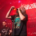 Los encargados de ir calentando la velada fueron KRAZARK, que se presentaban en formato quinteto con el regreso a escena de Kiara a la misma tras su reciente maternidad, conformando junto a Miguel un perfecto tándem a cargo de las seis cuerdas que dio un juego extraordinario. Apoyado por una potente base rítmica conformada por, Andrés al bajo y Joan en la batería y como no la gran voz y el potente carisma de Esteban. «Ride the hell» era el tema elegido para el arranque con Esteban tirando de megáfono, para enganchar ya desde esos primeros acordes a un público entregado que disfruto de la noche desde el primer momento. La demoledora «Dark city» sonaba a continuación constatando que el juego de las dos guitarras le daban un punto extra al sonido de la banda, que no viene si no a confirmar su evolución y el destacado papel dentro del sonido stoner nacional con un estilo propio en el que sin abandonar el sonido propio del género le dan su matiz personal con melodías marcadas e infinidad de matices musicales, tal y como pudimos comprobar a lo largo de la noche en temas como «Freak show» o el aclamado «Get the fuck out of my face» para despedirse con «Fire flake» dejando un agradable sabor de boca.