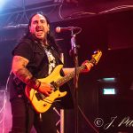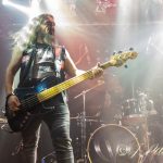 Otro de esos momentos que uno espera encontrase en un concierto de VHÄLDEMAR, es ese en el que Carlos ejerce su papel de Frontman, algo que por otra parte hace a la perfección y entona esa serie de dedicatorias improvisadas que preceden a «Bastards».«Heavy Metal» sonaba como un cañón, en la poderosa voz de Carlos reivindicando un género que la banda representa como nadie. Los teclados de Jon eran de nuevo los encargados de introducir el siguiente tema «Howling At The Moon» para el que la banda contaría con la colaboración de Rubén Miranda (AFTER LAPSE) para dar la replica a un Carlos que acabaría cantando entre el público para regocijo del mismo, que durante todo el concierto estuvo haciendo honor al grito de la banda estuvo «A muerte» con ellos, algo que se repetiría a lo largo de varios momentos de la noche. «The Old Man» servía como aperitivo para la presentación de la banda en su parte final con el fondo de la batería de Jandro y sobre todo del bajo de Raúl que se mostró como parte fundamental de la banda no solo con el manejo a las cuatro cuerdas sino también en el dominio de la voz, apoyando a Carlos en todo momento.