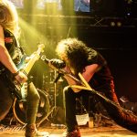 «Dusty Road» donde de nuevo los riff y punteos de Pedro nos dejaban sin palabras principalmente en el solo final, mientras la sala resonaba como una sola voz, acompañando a la banda en temas como «Metal of the Word» tras el cual abandonaban la sala antes de los siempre esperados bises, que comenzaban con un solo de guitarra que partía desde detrás del escenario para unírsele momentos después Jonkol sobre el mismo y establecer un duelo de solos guitarra, teclados para desembocar ya con toda la banda en «Breaking All the Rules» todo un clásico, acogido como tal con el mayor entusiasmo, al igual que «1366 (Old King’s Visions – Part V)». La voz de Raúl tomaría especial protagonismo durante «Fear» para ahora si acercarnos al inminente final protagonizado por «Energy» como impresionante y delirante gran traca final en la que de nuevo Rubén subía al escenario para unir su voz a la de la banda, mientras Carlos, Pedro y Raúl acabarían tocando entre el público donde acabarían intercambiando sus instrumentos llegando un momento en el que lo mismo podía encontrarte ya sobre el escenario a Jandro tocando el bajo como a Carlos en la batería, sin duda un fin de fiesta por todo lo alto en lo que fue una noche memorable de Heavy Metal en el más amplio sentido del término.