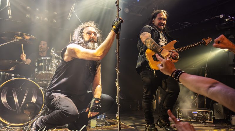 Las manecillas del reloj marcaban las nueve menos veinte cuando las luces de la sala se apagaban y sonaban la inconfundible voz de Dio entonando «Long Live Rock ‘n’ Roll» preludio de lo que solo unos segundos después empezaríamos a vivir, con la banda tomando posiciones mientras sonaba su intro, La formación conformada por Carlos Escudero en la voz y Pedro J. Monge en la guitarra. Jon Koldo Tera «Jonkol» a los teclados, Raúl Serrano al bajo, todos ellos siguiendo el ritmo marcado por la batería de Jandro. Su ya característico grito de guerra «A Muerte Madrid» era la señal de partida para arrancar metiendo ya la primera velocidad con dos temas incluidos en su último trabajo Sanctuary Of Death, «Dreambreaker» al que seguía “Devil’ s Child” puro Power Metal, con un estribillo pegadizo, que nos impregnaba ya a todos de una atmosfera metalera que nos nos abandonaría en toda la noche. Tras uno de los primeros y divertidos speak con los que Carlos fue amenizando la noche, llegaba el turno de «Muerte al Mago» con una sala que no dejaba de saltar en la que los puños y los cuernos en alto eran la tónica dominante. La última entrega de «Old King´s Visions VII» nos recordaba que estamos ante la presentación del séptimo trabajo de la banda, para reducir a continuación sutilmente las revoluciones mientras unas leves notas salidas de los teclados de Jonkol nos adentraban en «Deathwalker» para poco a poco cederle el protagonismo principal a los punteos salidos de las cuerdas de la guitarra de Pedro y la batería de Jandro.