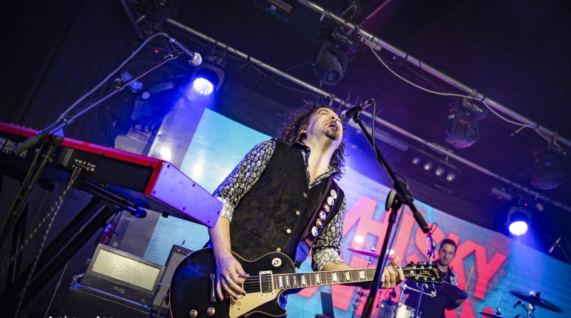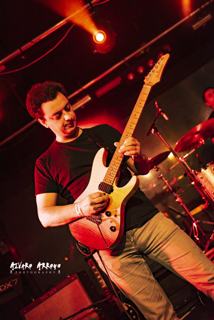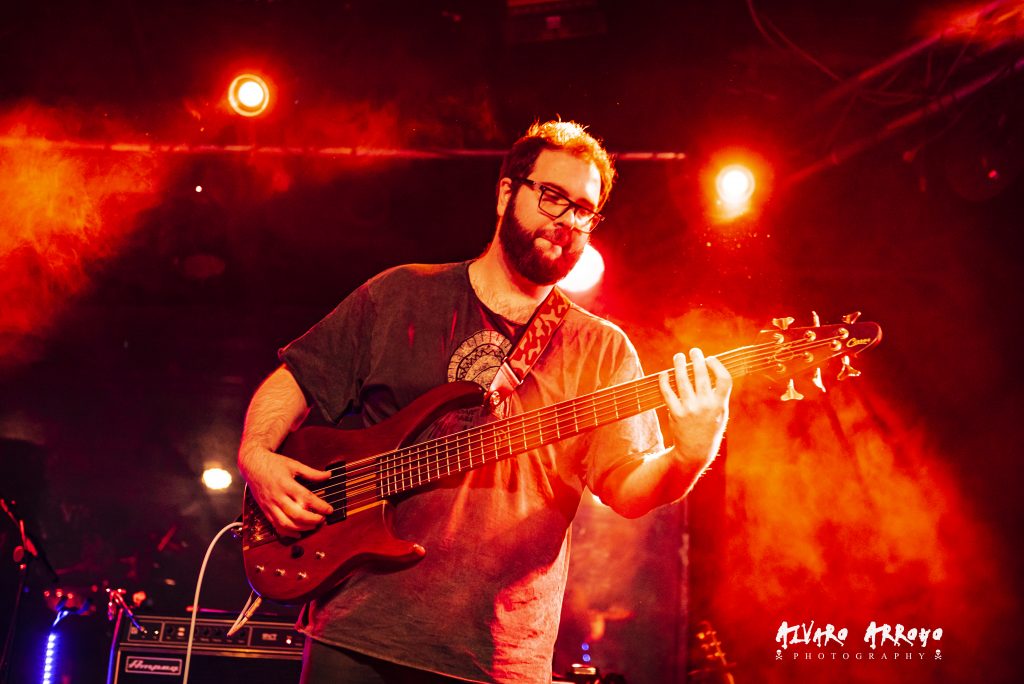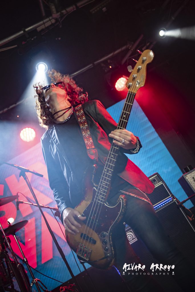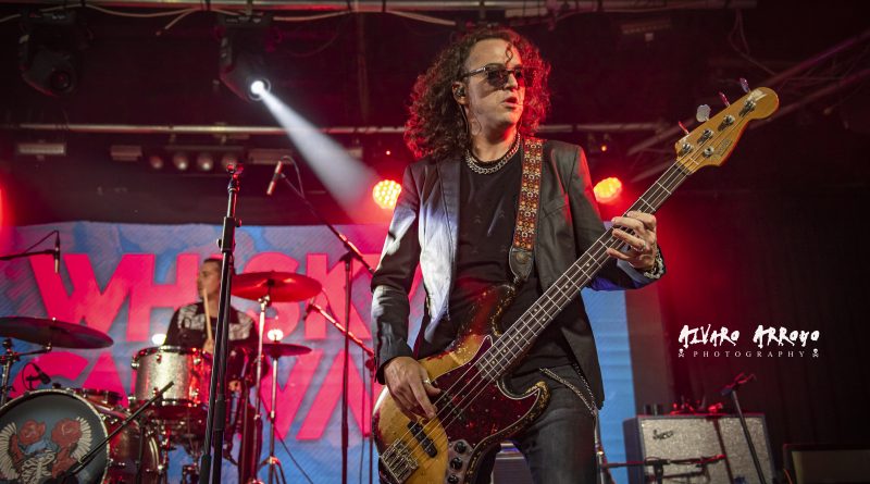 Tras el rock pesado de “Maldita Blancanieves”, Jesús alienta al público indicando que su banda “ha venido a una fiesta”, iniciando Miguel las notas mantenidas con efectos chorus de “En Algún Lugar”, y rematado de nuevo con un gran solo de guitarra tirando de palanca. Vuelta a su última obra, con “Mientras Duermes”, tema de melodía oriental, con una potente base rítmica a cargo de Iago Blanco a la batería y Álex Rapitis al bajo. Precisamente, Álex se encarga de introducir “Paralelos Divergentes”, recorriendo a dos manos el mástil de su bajo. Con el pegadizo estribillo de “Vacío”, el ya numeroso público que esperaba a WHISKY CARAVAN, se encargó de secundar las rasgadas líneas vocales de Jesús Suárez, consiguiendo el punto más alto de su actuación.