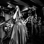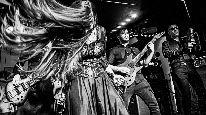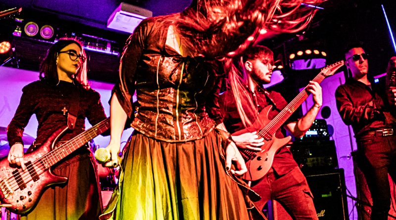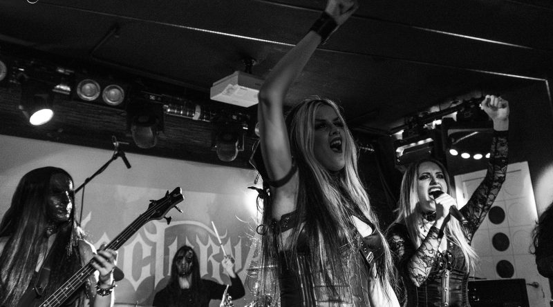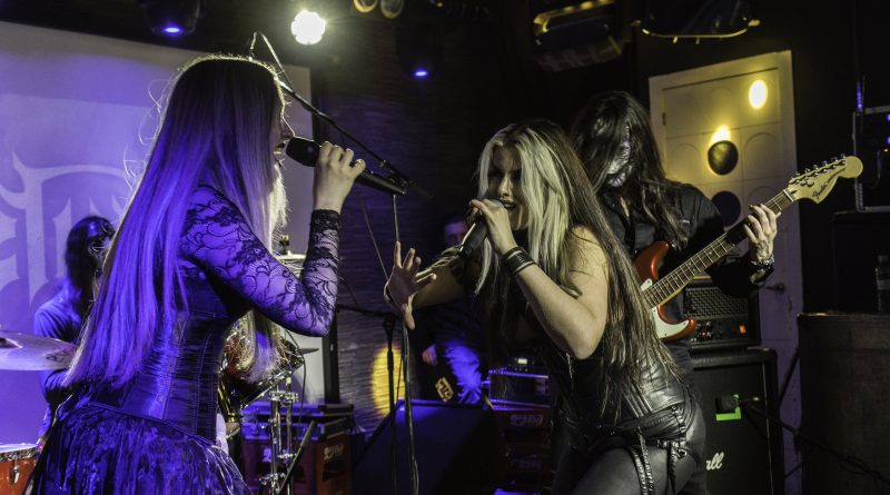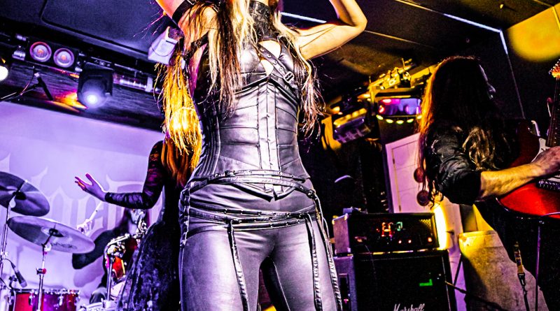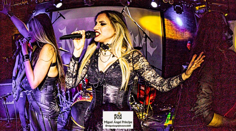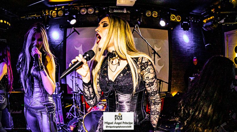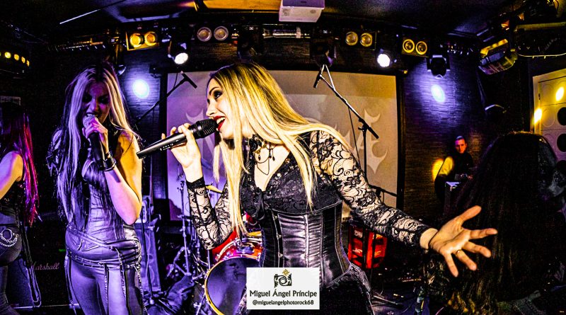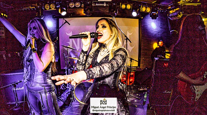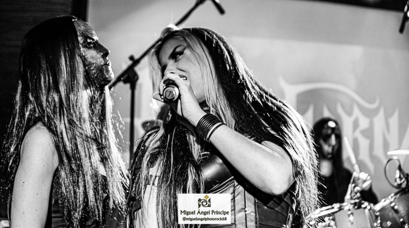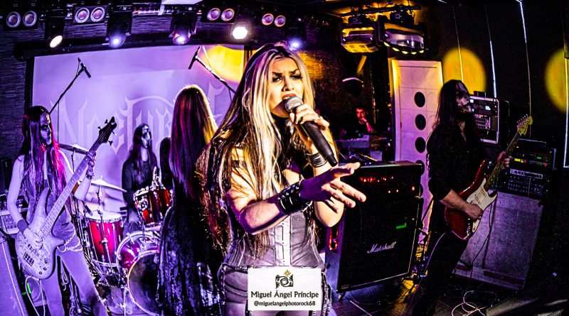 La tercera propuesta musical de la noche llegaba de la mano de los italianos NOCTURNA. Una puesta en escena muy cuidada se hacia latente desde el primer momento con toda la banda inmóvil sobre el escenario durante la Intro; guitarra, bajo y batería de frente con su rostro oculto bajo unas mascaras, que no abandonarían en toda la noche, mientras que su dupla vocal Grace Darkling y Rehn Stillnigth daban la espalda al respetable y mantenían la posición incluso en los primeros compases de «New Evil», tema elegido para abrir la descarga en el que ya pudimos apreciar pese algunos leves problemas de sonido, las magnificas dotes de sus cantantes que a lo largo de toda la noche fueron jugando con sus diferentes tesituras vocales sin perder de vista tampoco la complicidad con el publico, todo ello rodeado por una cuidada y estudiada puesta en escena en la que la inmovilidad en los momentos instrumentales por parte de ambas fue una constante.