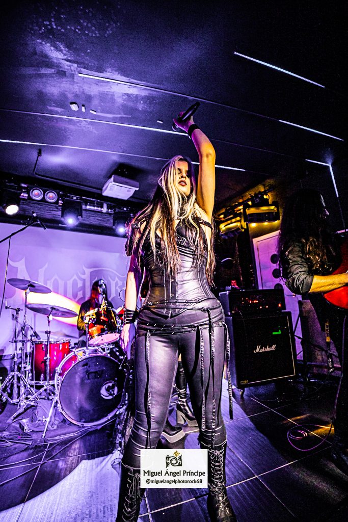 Mientras desgranaban temas como «Sea of Fire» o «Blood of Heaven», pudimos también ir apreciando la magnifica base rítmica formada por Deimos a la batería y Antares al bajo con un esplendido Hedon a la guitarra de la cual salieron a lo largo de la noche una buena colección de riffs y tras cuya mascara podríamos tal vez intuir que se oculta Federico Mondelli, mientras la noche continuaba con temas como la oscura «Darkest Days» o la mas melódica «The Sorrow Path» donde los pianos pregrabados van marcando el inicio. «The Trickster» y «In This Tragedy» nos acercaban al final protagonizado por «Daughter of The Night», tema que da nombre a su primero y único trabajo hasta el momento.
