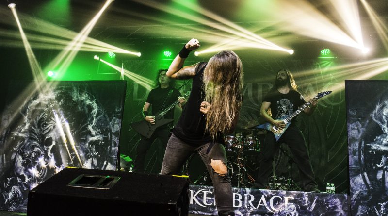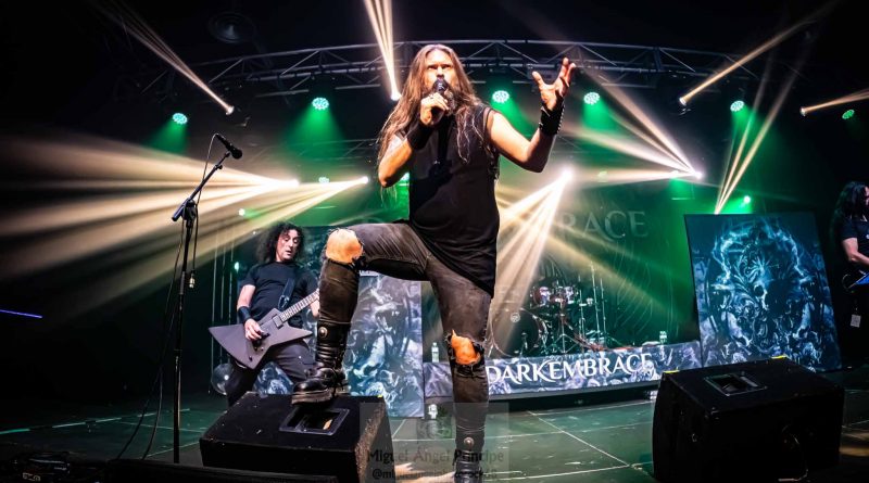 Los gallegos DARK EMBRACE, liderados por el vocalista Óscar Rilo, fueron los encargados de coger el relevo sobre las tablas, acercándose con este concierto al final de la gira de presentación de su último álbum titulado Dark Heavy Metal, dispuestos a deleitarnos con toda la potencia que les caracteriza. «Time is Telling» ejercía su papel de intro, para desembocar a continuación en “Personal Hell” y retrotraerse a clásicos de The Call Of The Wolves como «Time Will Tell» con un especial protagonismo para la batería de Julio o «Let The Blind to See» donde los registros guturales se entremezclan con otros más melódicos, faceta que Oscar domina como nadie.