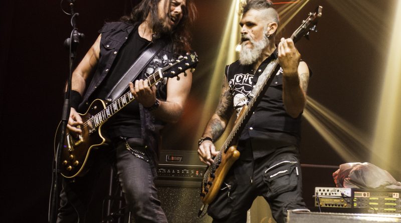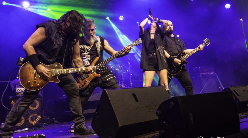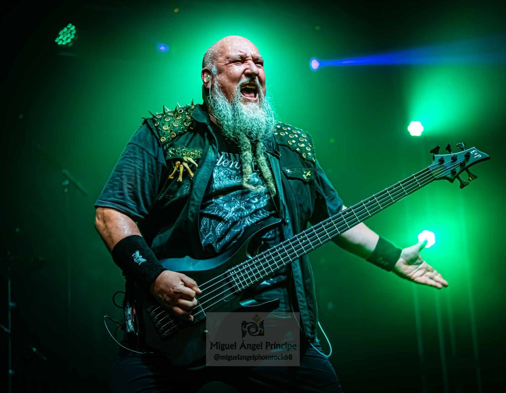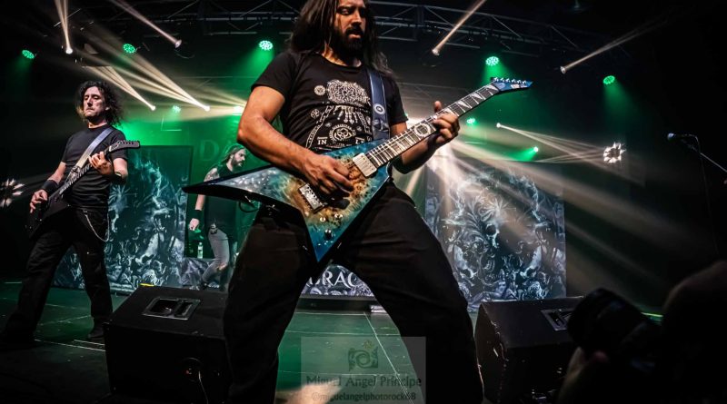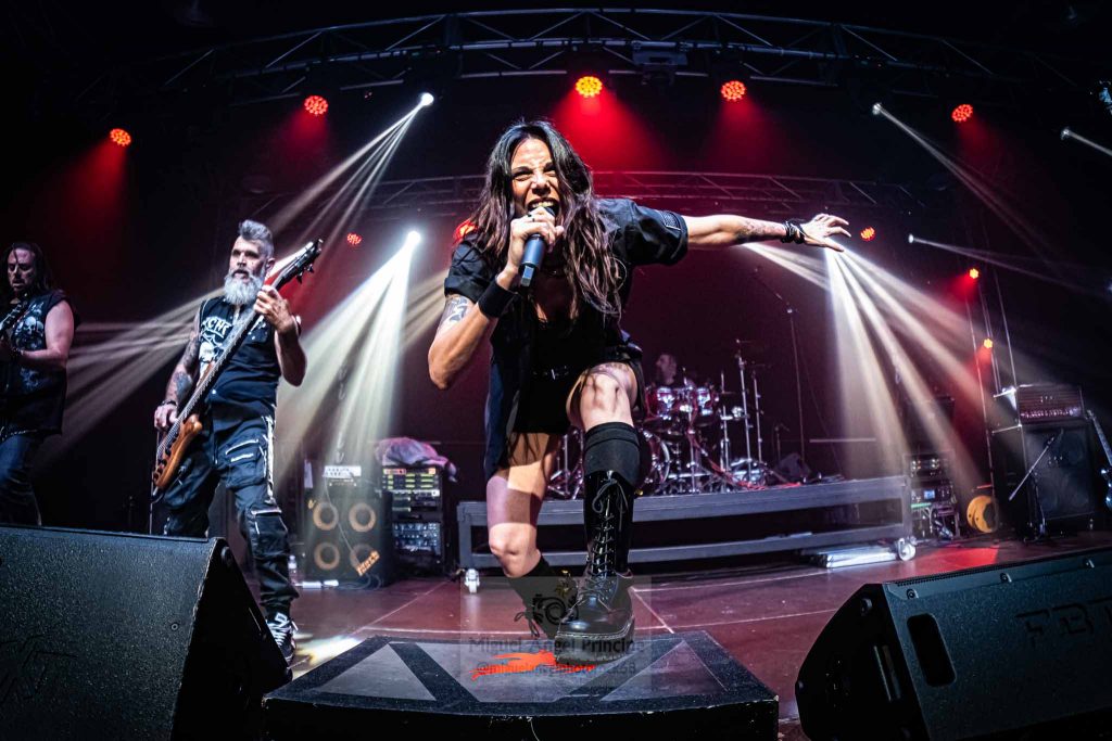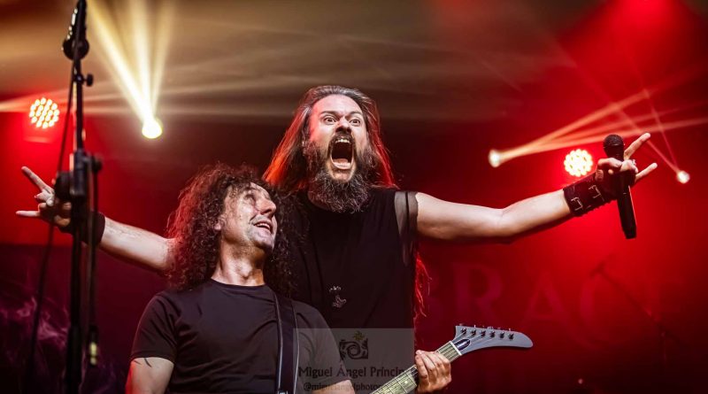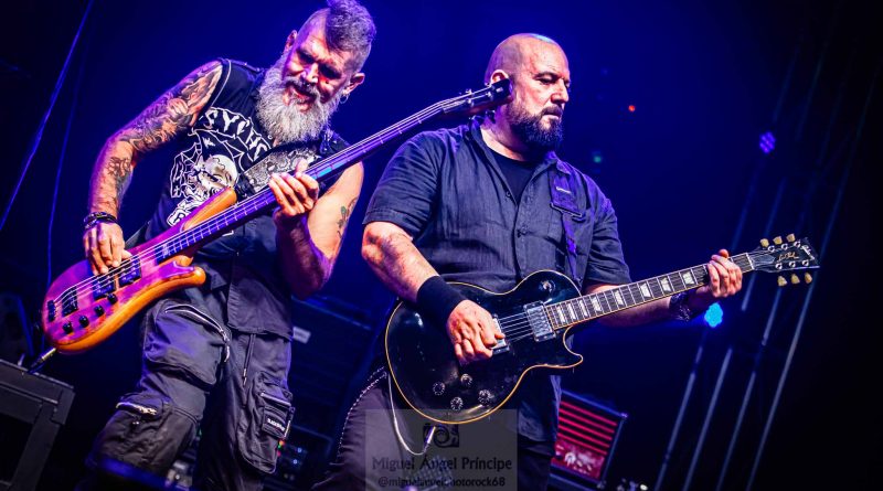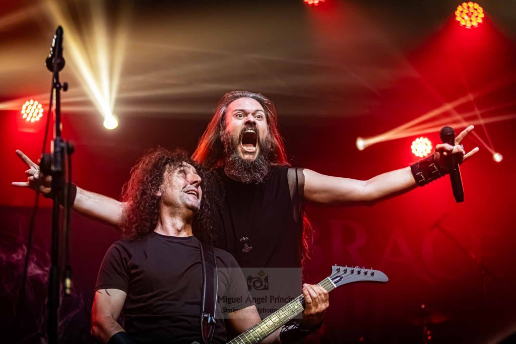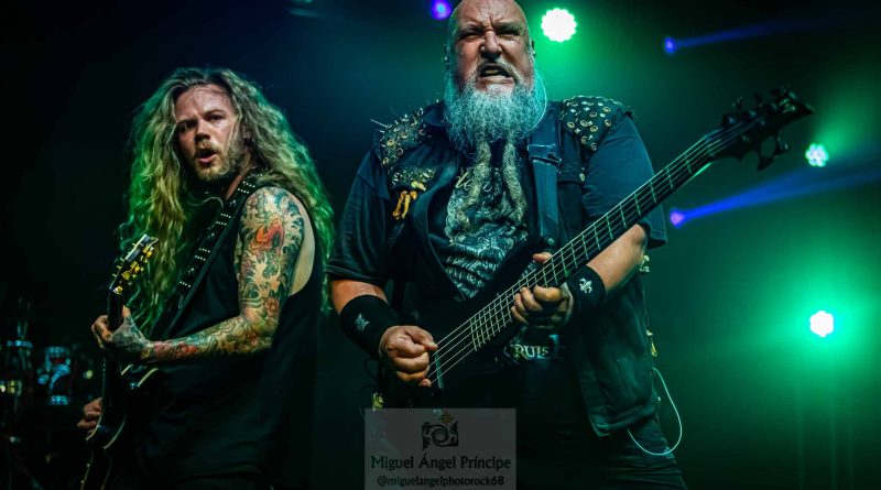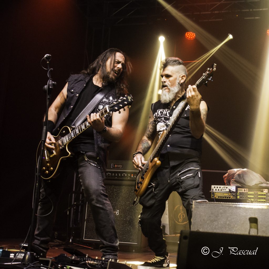 Tras esa pequeña regresión de nuevo era su más reciente trabajo el que tomaba el protagonismo «Life And Legacy» «Metal Is Religion» puro heavy metal con un riff galopante, donde las guitarras de Mou y Markos brillaron especialmente, guitarras que no conocieron ni un solo minuto de calma en toda la noche no solo marcándose un riff tras otro para deleitarnos con el sonido de sus cuerdas, mientras no paraban de intercambiar de manera continua sus posiciones sobre el escenario. Un imprescindible en el directo de la banda como «Metalhead Till I Die» nos hacia presagiar la cercanía del final que llegaría como casi era de esperar con «Dark Heavy metal» y Mou y Markos irrumpiendo para tocar entre el público, propiciando un pequeño circle pit a su alrededor.