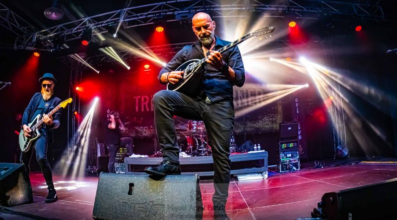 El particular estilo de TRI STATE CORNER, que ellos mismo han venido a denominar bouzouki-rock y que cualquiera a priori hubiera descartado, pero que una vez escuchado, no deja de sorprenderte en el buen sentido, con Vassilios Maniatopoulos «Lucky» que esta noche hacía doblete, ya que es el actual batería de RAGE, a la voz, Christoph Tockz en la guitarra, Ioannis Maniatopoulos al bouzouki y completando la formación Christos Eftimiadis en la batería, curiosamente se da la circunstancia de que este último fue a su vez batería de RAGE, destacar la falta de un bajista físico sobre el escenario, si bien si pudimos escucharle enlatado. Los primeros acordes de «Faster» ya nos adentraban, en el peculiar sonido del bouzouki de Ioannis, que le daba un toque particular a las canciones, temas que por otra parte serían casi igual de buenos sin este instrumento, pero que ganan un pequeño punto más con la incorporación del mismo y colocan a la banda en un nicho musical claramente diferenciador.