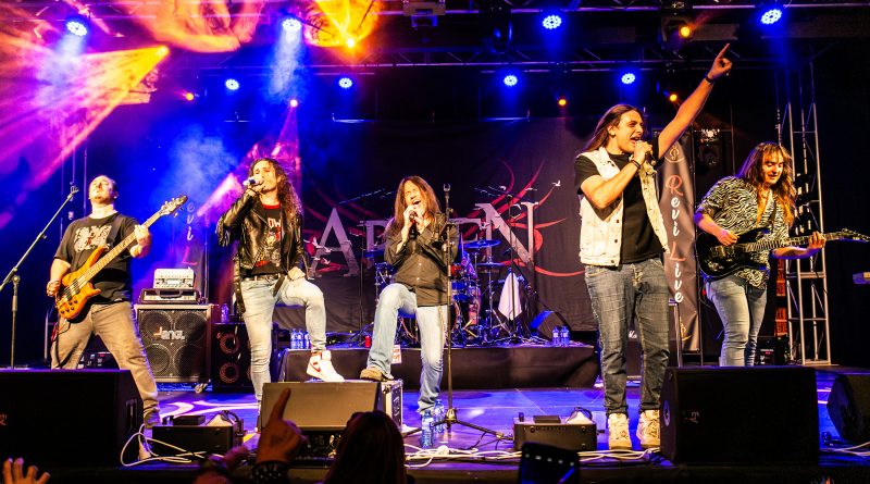 Mientras se ultimaban los perceptivos cambios de equipo, recibimos sobre el escenario a un nuevo representante de Metal Legacy Alcorcón, acompañado en esta ocasión por un miembro del Quintessence metal Club, para anunciarnos la colaboración de ambas asociaciones con un concierto el próximo día 16 de noviembre en el que actuarán Omission y Avlak. Tras esta feliz noticia, llegaba el turno de ARWEN, para llevarnos a los sonidos más hard rockeros propios de la formación madrileña que practicante baso la totalidad de su repertorio en su disco Soul’s Sentence que sonaría prácticamente es su totalidad, destacar la gran labor tanto vocal como de saber estar y animar al público de José Garrido que supo conectar con el mismo desde el primer minuto, y como no uno de esos momentos que siempre se agradecen al saltar los chicos de HITTEN sobre el escenario a acompañar a sus compañeros para juntos regalarnos una versión de «Here I Go Again» el siempre eterno tema de Whitesnake, que ya desataría la locura entre los asistentes, locura que no pararía hasta unos temas después cuando «Torn from Home» pusiera el punto final a su actuación.