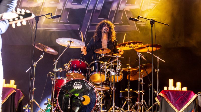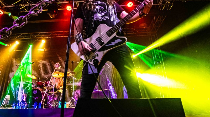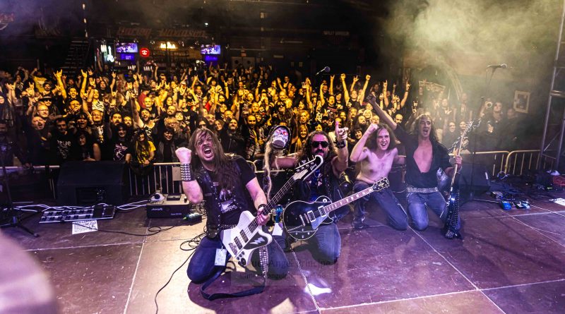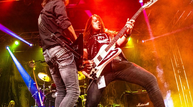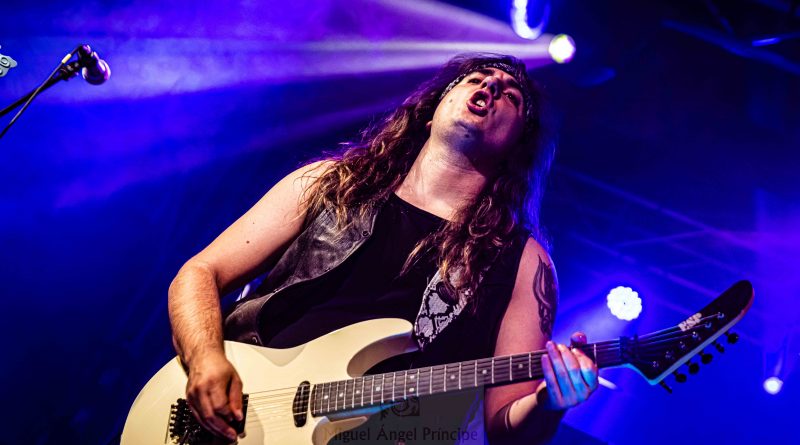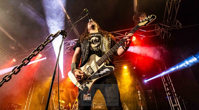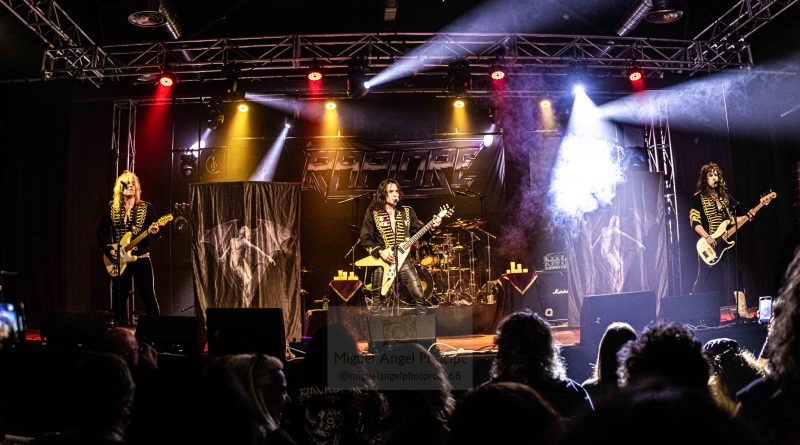 Los primeros protagonistas de la historia, se hicieron esperar algo más de lo previsto, pero como no hay mal que por bien no venga como se suele decir, el retraso nos permitía, tomar algo con tranquilidad y entablar animadas charlas con algunos músicos y compañeros que también se encontraban por allí, tanto es así que cuando quisimos darnos cuenta ya sonaban los primeros acordes de «Triumphal March to Hell» de los barceloneses RAPTORE y tuvimos que salir corriendo para tomar posiciones, que nos permitieran dejar la debida constancia fotografía. El cuarteto liderado por el cantante y guitarrista argentino Nico Cattoni, se encuentra a las puertas de la publicación de su tercer trabajo Renaissance, del que pudimos escuchar algunos temas a lo largo de la noche como «Ecclesia», «Satana» o «Abaddon» manteniendo ese estilo de Heavy Metal clásico marca de la casa con el que nos obsequiaron a lo largo de la noche.