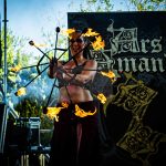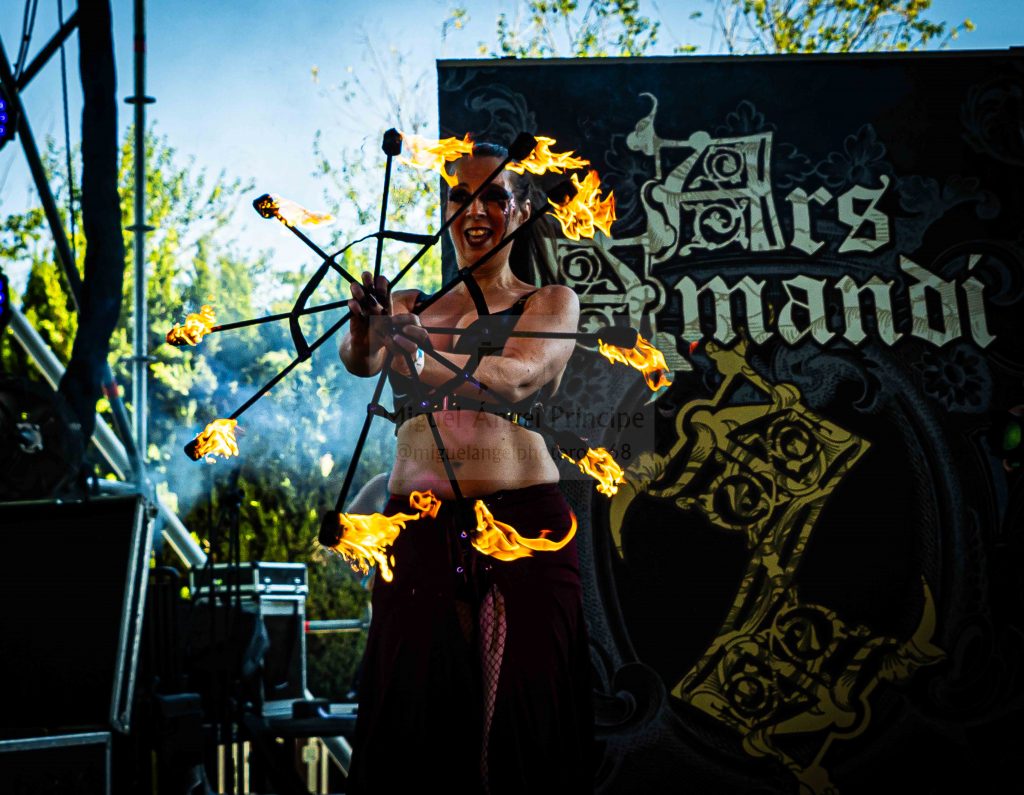 EIHWAR llegado desde Francia, en formato dúo y muy controvertido, tomó posesión a media tarde del tercer escenario como una apuesta arriesgada de corte tribal en el atrezzo por parte de la vocalista quien timbal gigante en mano, apareció ataviada con pieles mientras que su compañero de filas lo hacía con performance futurista al frente de los teclados, encargándose éste del resto de unos sonidos paganos llegados desde lo más profundo de La Galia más nórdica que tuvo en la electrónica su mejor aliado junto a una puesta en escena ritual e inmersiva, lográndose con estos aparejos crear una atmósfera increíblemente intimista donde la expectación tanto para bien como para mal se leyó en la cara de la gente no quedando nadie indiferente.