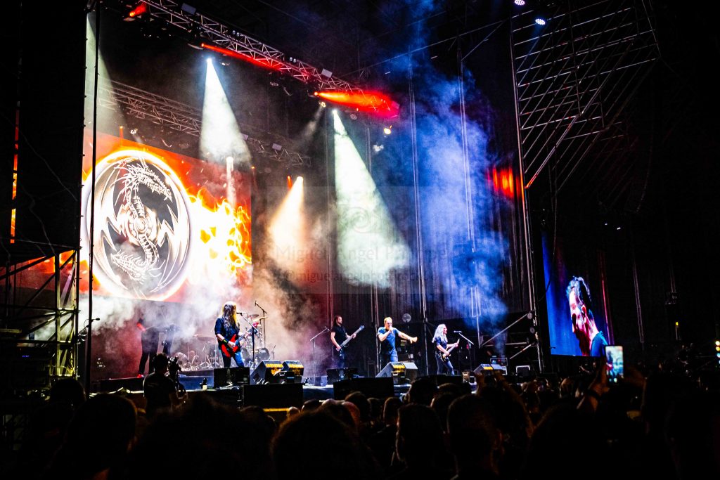 «Pyre Of The Gods» abrió un precioso espectáculo de Heavy Metal en el que por parte del respetable, predominaron los cuernos en alto simbolizando esa empatía tanto con la música como con unos músicos que se despacharon a capricho exhibiendo un excelente sonido como base de su éxito y despojados de adornos innecesarios, ya que tan sólo con un excelente repertorio bordaron una faena en la que demostraron virtuosismo, calidad, tablas y sobre todo contundencia.