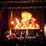 Temas como «Once Upon A Pale Horse», «Cursed Angel Of Doom», «Ora Pro Nobis Lucifer», «Conquer All», «Christian To The Lions» o «Bartzabel» hicieron acto de presencia inmersos en una performance de imitación a una misa negra donde tuvieron su lugar diferentes efectos para otorgar magnificencia a un directo que contó con fuegos por doquier, iluminando estos la escena como una auténtica metáfora hacia su iconografía más satánica mientras un humo rezumante se alzaba serpenteando entre los miembros de BEHEMOTH ensalzando sus figuras y regalando vistosidad a un espectáculo donde los simbolismos a modo de trompetas junto con el resto del atrezzo, literalmente cautivaron al respetable.