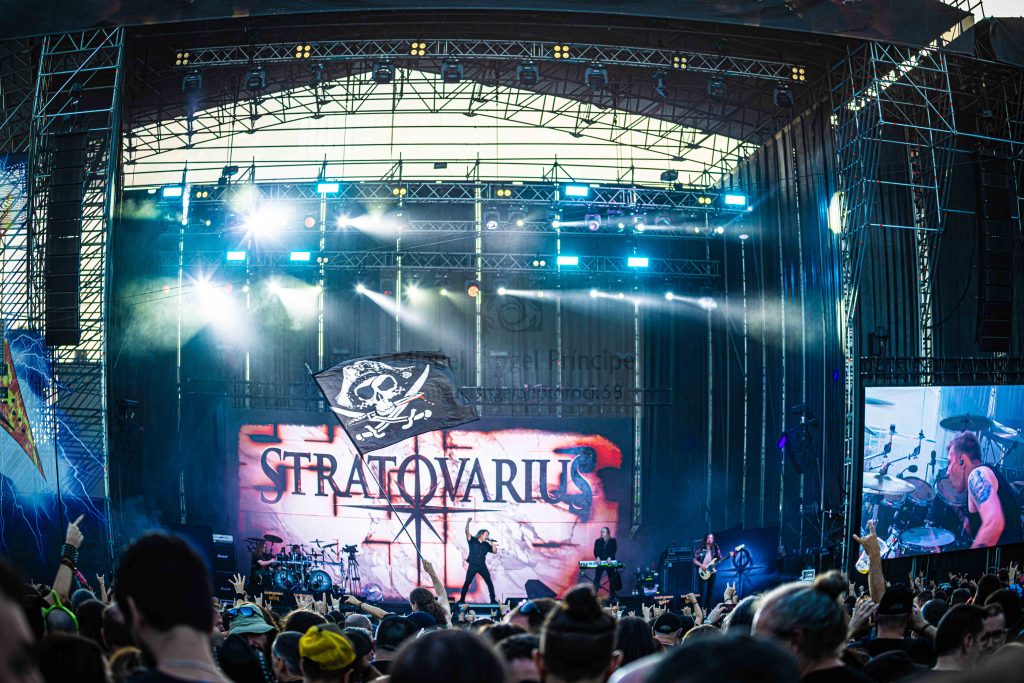 STRATOVARIUS con absoluta compenetración en su directo, se subió a la tarima con la seguridad de estar en casa ya que su asiduidad al Festival es parte de ese aplomo que presentó el grupo durante todo el concierto, una actuación que tuvo lugar en el Azucena Stage donde la formación finlandesa liderada por Timo Kotipelto en excelente estado de voz mostró su vertiente más clásica tanto en sus filas con Jens Johansson a los teclados, Matias Kupianien a la guitarra y Rolf Pilve a la batería como en un repertorio que aunque comenzado con la nueva «Survive», desplegó toda una alfombra de imprescindibles clásicos.