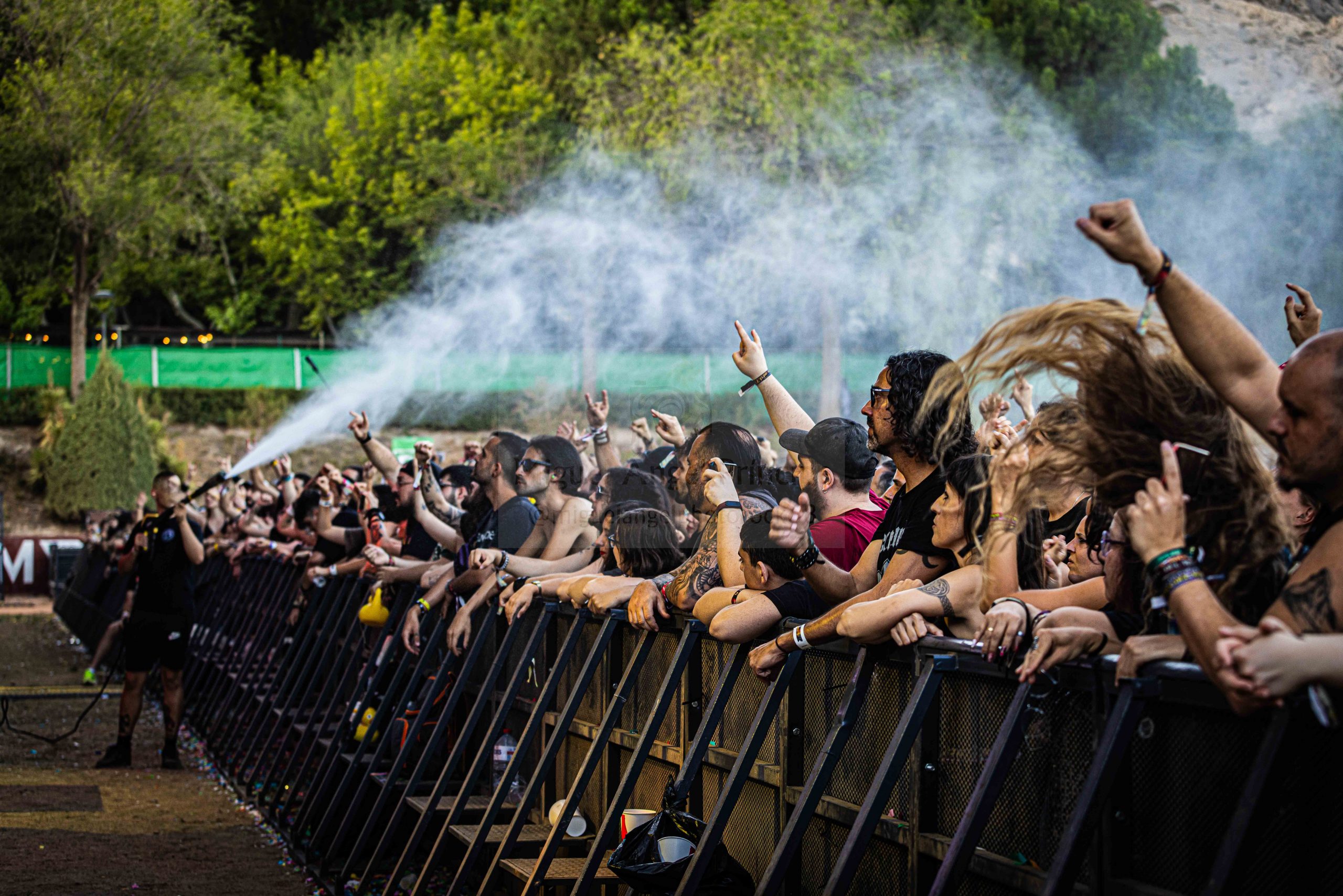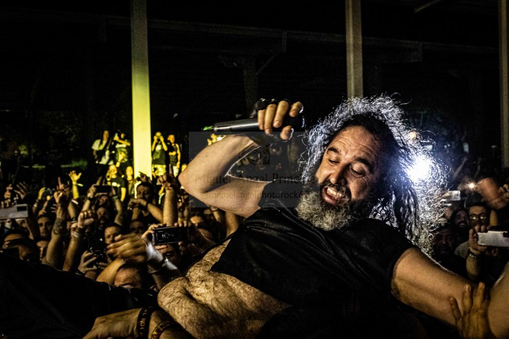 Garra, pasión, empuje, nervio y mucha «tralla» es lo que desplegaron estos jinetes aplastándonos con «Maldito Corazón», «No Sufriré Jamás Por Ti» de aguerridos coros por parte de Niko o «Tiempos De Guerra» antes de que llegara el momento en el que Tete subido a una lancha neumática, fuese paseado en volandas por encima de las cabezas de la gente mientras seguía cantando y generando ese auténtico espectáculo al que nos tiene acostumbrados, requiriendo mención aparte tanto la soberbia calidad vocal de este gran cantante como su reconocidísima personalidad de frontman imbatible.