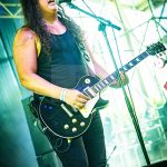 Muy vitoreado y sin duda como uno de los artífices del proyecto, el público tampoco apartó la vista del que es uno de nuestros mejores guitarristas Jero Ramiro quien además de mostrarnos su faceta más afilada y virguera a las seis cuerdas, no se dejó en el tintero algunas piezas que en su día defendiese Leonor Marchesi en el álbum Templario siendo una de ellas «Por La Espalda» encarándose la misma tanto por él como por la banda con contundencia, pasión y con la sobrecogedora energía que desprendió Eva García derrochando voz y magnetismo escénico.