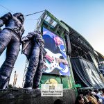 Todo se ha dicho sobre ellos, sus nombres ocupan un lugar preferente en el cielo de ZEPPELIN, han despertado filias y fobias casi a partes iguales siendo muy cuestionada su música en ocasiones con geniales connotaciones cercanas al Funky como en la sensual «I Was Made For Lovin’ You» sin la que ya no podríamos vivir o los toques más Hard de «I Love It Loud» sin los cuales nuestras vidas ya no sería lo mismo, al igual que tampoco sin la que abrió el show «Detroit Rock City» o la que lo cerró como bis «Rock And Roll All Nite» con todo el público rindiendo pleitesía a este cuarteto que literalmente al comienzo de su directo en torno a las 22:15 horas bajó del cielo cabalgando plataformas para ser depositado en un escenario que quemaron exponiendo sus mejores galas, su mejor actitud y su mejor versión sin escatimar en nada y derrochando en espectacularidad mientras los ojos del recinto miraban arriba, abajo, a diestra y siniestra sin poder dejar de admirar lo que fue un despliegue de medios y temas, pues no sólo la tirolina con Stanley subido a ella fue impresionante sino que la siempre efectista actuación de Gene Simmons echando sangre por la boca mientras se marcaba un impagable solo de bajo y volviendo al primero, su beso de judas a la guitarra al finalizar el concierto para destrozarla contra la tarima acto seguido, convivieron con esa puesta en escena arrolladora y canciones legendarias como lo son «Shout It A Loud», «Deuce» y «War Machine» siguiendo con «100.000 Years», «God Of Thunder», «Love Gun», «Black Diamond», “Lick It Up» o «Calling Dr. Love» observadas también en tercera persona por los cuatro guerreros que emparejados y previamente hinchados como gigantes muñecos a modo de estatuas, se situaban a ambos lados del escenario como esfinges observadoras de su propia actuación mirando también fijamente a todos los seguidores que los ovacionaban desde la arena.
