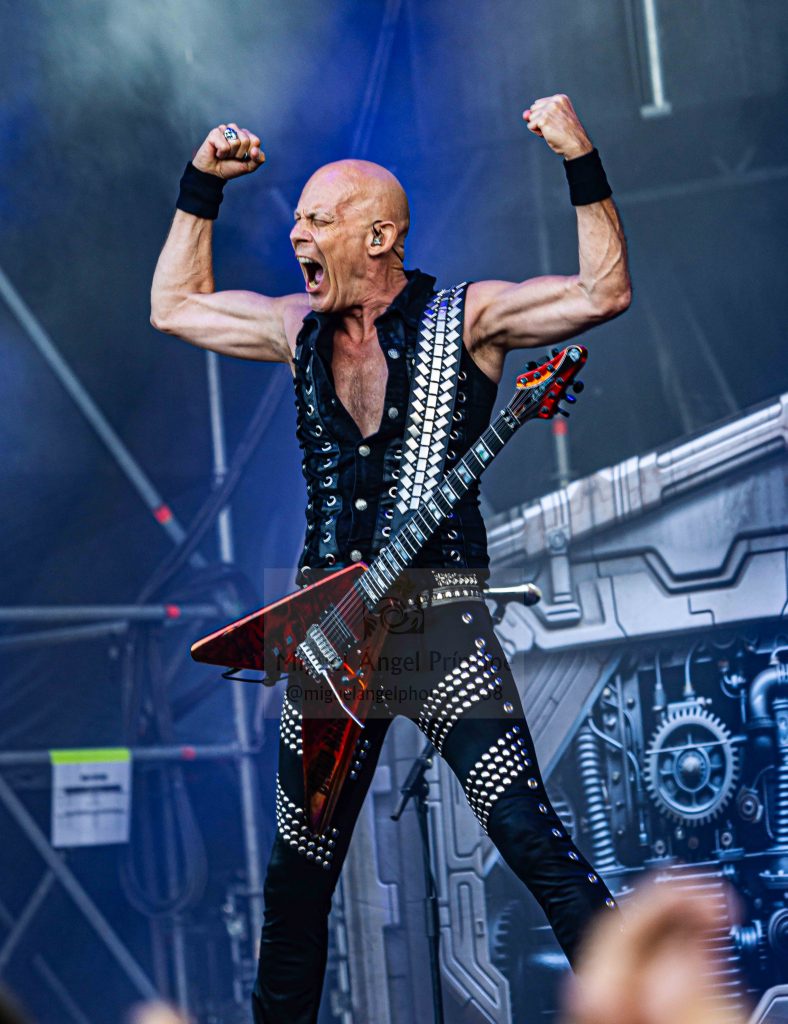 Tornillo se desenvolvió a capricho tanto sobre la tarima como a la voz entregándose a la actualidad del «Straight Up Jack» y al pasado al echarse inevitablemente en brazos del Metal Heart con la positiva «Midnight Mover» para continuar con energía gracias a «Starlight», «Losers Anda Winers» y «Flash Rockin’ Man» con un Mark volcado ante el micrófono apoyado incondicionalmente por miles de seguidores que en el caso de esta siempre victoriosa formación, no buscan una especial e impresionante puesta en escena sino que aprecian más la carga de profundidad, aspereza, brutalidad y visceralidad sentimental que sus actuaciones despiertan.Los clásicos del grupo como «Teutonic Terror» o la rápida más speed que nunca gracias a las tres guitarras «Fast As A Shark» junto con la imbatible y épica «Balls To The Wall», fueron cantadas por miles de almas al unísono que elevaron sus manos queriendo tocar a estos ídolos de siempre que con la noche acechando ya sobre sus cabezas, se despidieron con toda una coral entonando su nombre homenajeando, admirando y agradeciendo su actuación siempre tan bien recibida en nuestro país como reconocimiento al Heavy Metal referente que ha dejado una huella imborrable en nuestros ochenteros corazones.