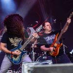 Cerrando filas para disfrutar de una primera línea tras el psicodélico Stoner de los germanos KADAVAR, llegó otro momento muy esperado a cargo de RICHIE KOTZEN liderando su propio combo en formato trío para regalar a todos los presentes una estela de sus siempre alucinantes y brillantes riffs arrancando los mejores sonidos a la guitarra.