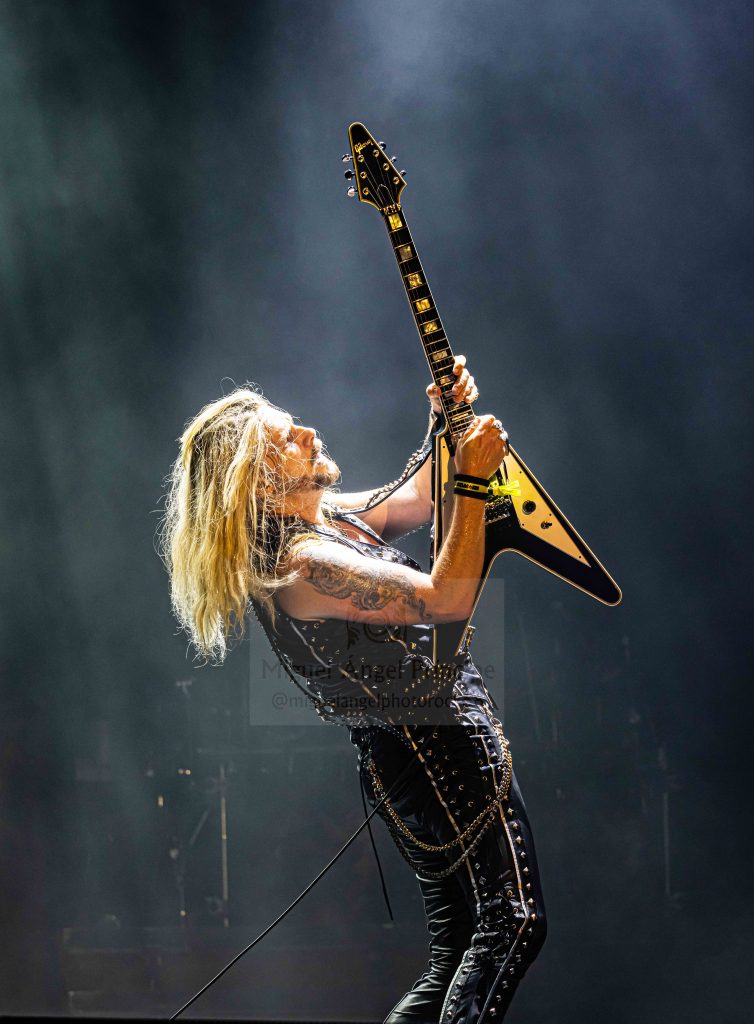 Arropados por la cruz que pendía presumiendo de colores sobre sus cabezas, el grupo se sintió cómodo sobre las tablas y disfrutamos de un Rob Halford seguro, firme, reconocible e irreductible avanzando repertorio con «You’ve Got Another Thing Comin», «Rapid Fire», «The Priest Is Back» y «Breaking The Law» que supuso una apoteosis indescriptible.