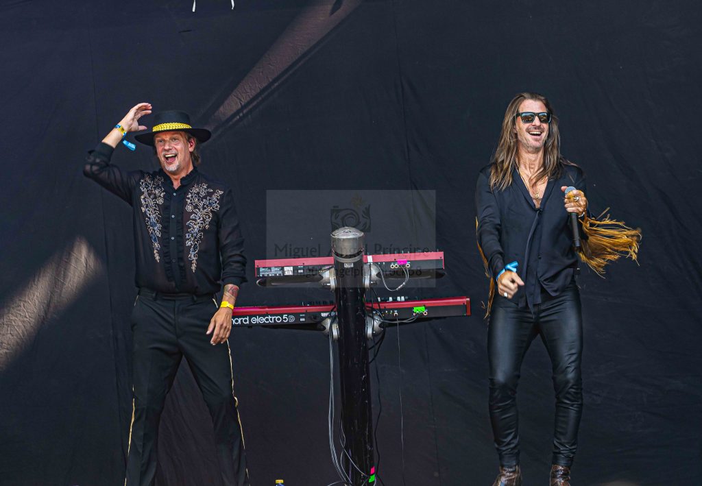 El efectismo escénico no se perdió en ningún momento y es que tanto la trabajada imagen del vocalista como el carisma que desprende este frontman sobre las tablas, son el ingrediente perfecto junto con su garganta para gestionar unos conciertos arrolladores sin ser su actuación en el Rock Imperium una excepción e interpretando además de otras canciones propias como «Techos De Cristal» o «Seremos Tú Y Yo», la ya habitual en su repertorio «Maldito Sea Tu Nombre» de los queridos ÁNGELES DEL INFIERNO defendida con la garra habitual para poner el colofón final con otra versión en este caso del «We Will Rock You», cerrando con ovaciones una impresionante actuación que nos mostró a un NOVOA disfrutando merecidamente de un dulce momento profesional.
