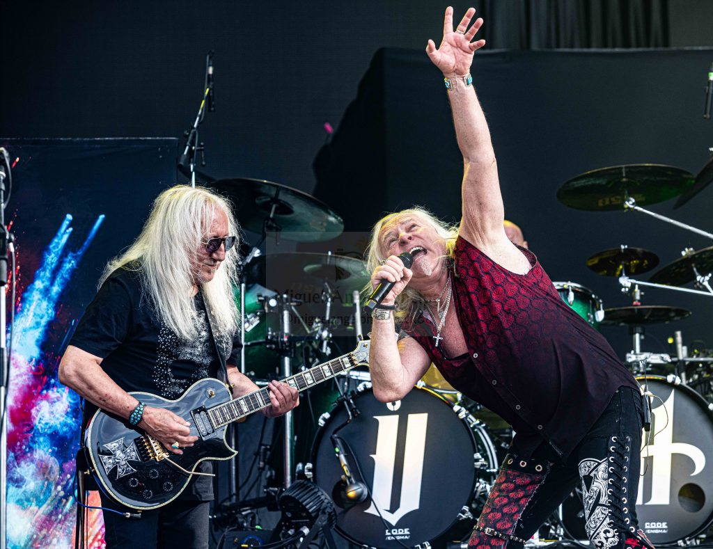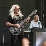 Difícil no establecer un partido de tenis visual entre mirar a un soberbio Bernie Shaw y a un feliz Mick Box que desde 1969 nos lleva dando alegrías como miembro original del grupo derrochando riffs a la par que sonrisas hacia la gente mientras el ritmo de los teclados de Lanzon, nos embaucaba con sonidos setenteros manifestados inalterables ante el tiempo.