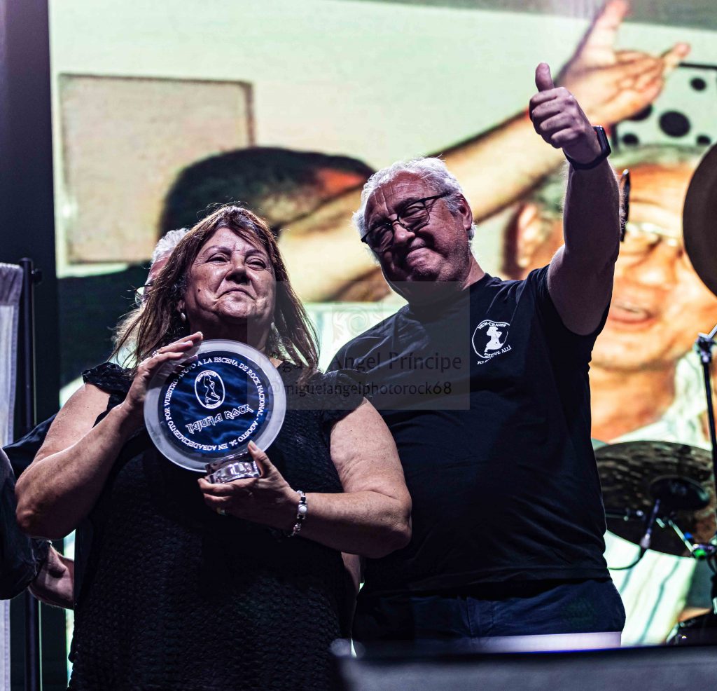 La noche también nos trajo un homenaje merecido y emotivo el que la organización del festival quiso brindar un merecido homenaje a Marisol y Antonio, propietarios de NEW CENTER discoteca de referencia en cuanto a la música en directo en la comunidad de Madrid. Con los protagonistas sobre el escenario, para recibir un pequeño detalle acompañados por parte de la organización, tras algunos problemas técnicos se proyectó un pequeño video, con felicitaciones de algunos de los miembros de las bandas que pasaron por allí en sus comienzos, Carlos Pina (Panzer), Armando de Castro (Barón Rojo), PepeMary (Bella Bestia) Juan Márquez (Coz) Miguel Oñate (Asfalto) y Juan Luís Serrano (Obús) que no solo dejó su testimonio grabado, sino que subió también al escenario para acompañarles.