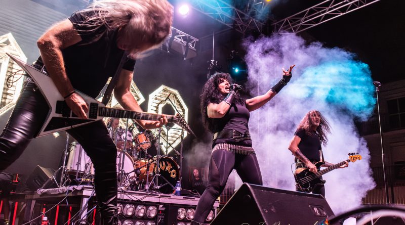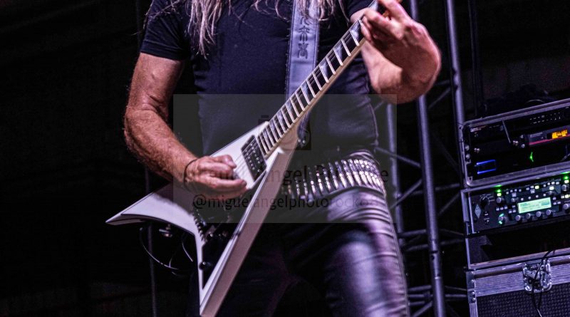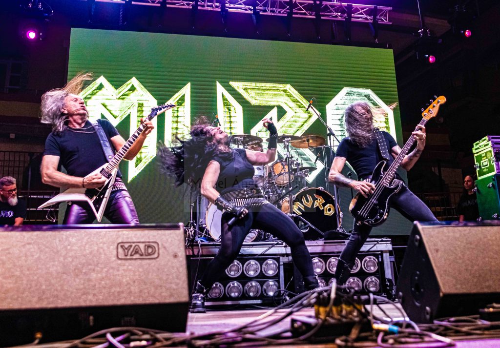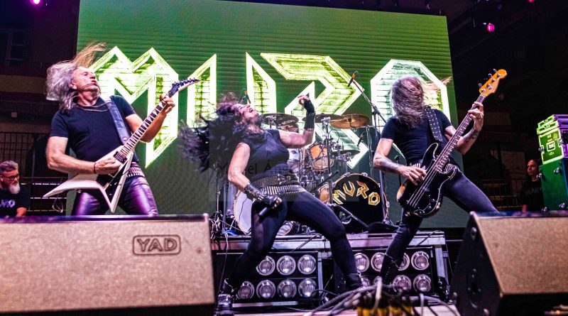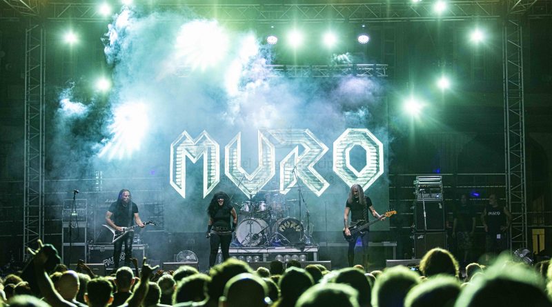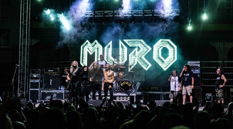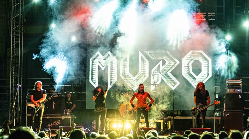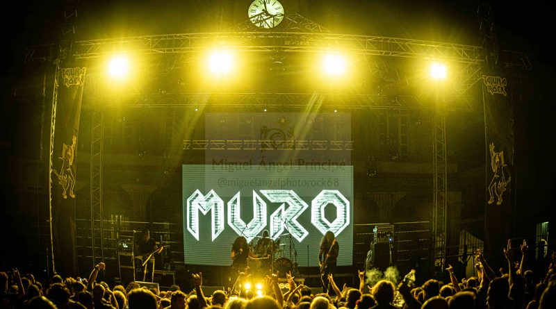 Tras un nuevo cambio de equipo, llegaba el momento de MURO, que salía al escenario ya muy avanzada la noche lo que hacía como viene siendo habitual en esas ocasiones, que el aforo fuera algo menor, pero como también es habitual y más tratándose de MURO los que resistíamos ese último empuje de la noche, no saldríamos defraudados, ya que si algo caracteriza al cuarteto formado por Rocksa a la voz Largo a la guitarra, Lapi a la batería y Julito al bajo, es salir a por todas cada vez que pisan un escenario y claro esta, no iba a ser esta la excepción. «El Cuarto Jinete» servía para arrancar ya a pleno rendimiento con un efectivo setlist con la banda en continuo movimiento intercambiando sus posiciones y Rocksa desbordando actitud, mientras sonaban temas tan emblemáticos como «Epilogo» o «Corazón de Metal» mientras la plaza entonaba el ya clásico cántico de: “Este MURO No Se Cae” y desde luego que no se cae, ya que una vez más me encontré a unos MURO con la misma energía que aquella primera vez que les vi en Alcorcón de teloneros de Barricada en un concierto que tristemente paso más a la historia por los altercados ocurridos que por la parte musical, algo que afortunadamente hace ya muchos años que los conciertos de Rock, han dejado atrás siendo hoy posiblemente uno de los públicos más respetuosos, pero volviendo a lo que nos ocupa hablar de la aptitud y estética y sonido de una banda que es puro Heavy Metal y que mantuvo en vilo a una plaza que no dejo de animar y cantar con ellos temas como los muy aclamados «Ciclón» o el siempre inolvidable «Traidor» y que se despedían a lo grande con «Mirada Asesina» y el regalito final de una versión del «Fast as a Shark» de los alemanes ACCEPT, dejando una vez más el listón del Tajuña Rock bien alto.