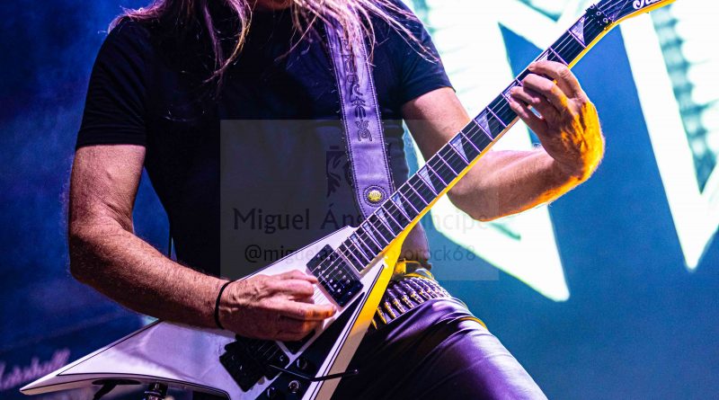 Tras este momento emotivo y previo cambio de equipo batería incluida llegaba el momento de AVALANCH, que se presentaba con la baja de Manuel Ramil, por enfermedad al que deseamos una pronta recuperación y cuya presencia sobre el escenario se echó de menos, con constantes recordatorios y ánimos por parte de su compañero José Pardial. La banda que en estos días se encuentra inmersa en las grabaciones de un álbum conmemorativo por su 30 Aniversario, grabaciones que alterna con su también gira XXX aniversario, encabezada por Alberto Rionda a la guitarra, José Pardial a la voz, Nando Campos al bajo y su última incorporación a la que aún no había tenido ocasión de ver en directo Bjorn Mendizábal, a la batería que demostró ser un digno sucesor del gran Mike Terrana. Como era de esperar celebrando su treinta aniversario, la banda dio un repaso a lo largo de casi toda su discografía, creo que tan solo el primer trabajo de la banda La llama eterna, fue el único que no se encontró representado, Arrancaron con «El Oráculo» para continuar con «Horizonte Lejano» con un Pardial inmenso, que fue dando todo de sí a lo largo de la noche no parando quieto sobre el escenario al igual que un siempre activo Nando, mientras caían uno tras otros temas como «Alas de Cristal», «Niño» y reservar para la recta final el momento emotivo de la noche con José animando a todos a cantar Ramil, Ramil para mandarle un video de apoyo, y despedirse ya con la traca final protagonizada por «Xana» y la siempre efectiva «Torquemada»
