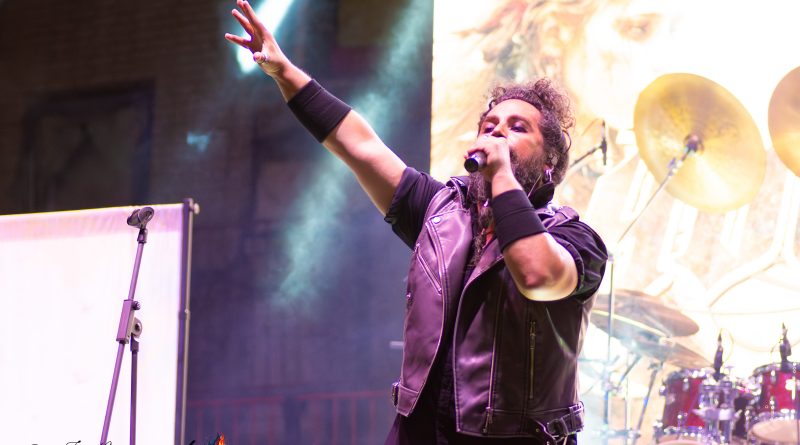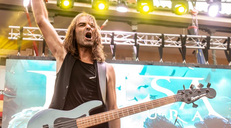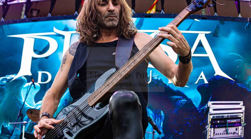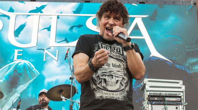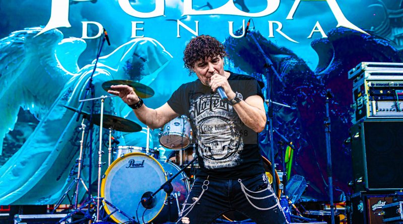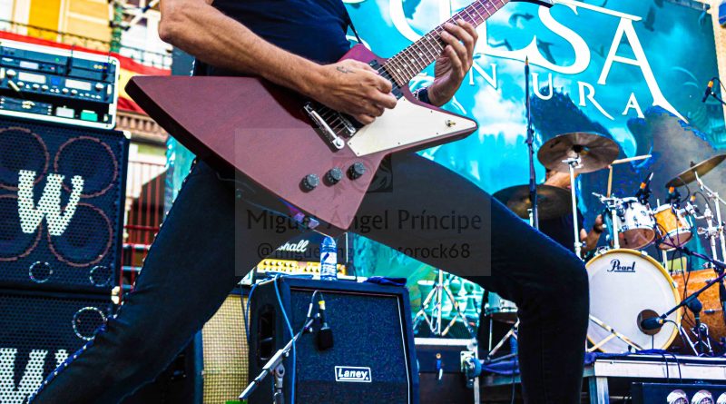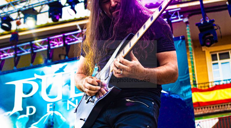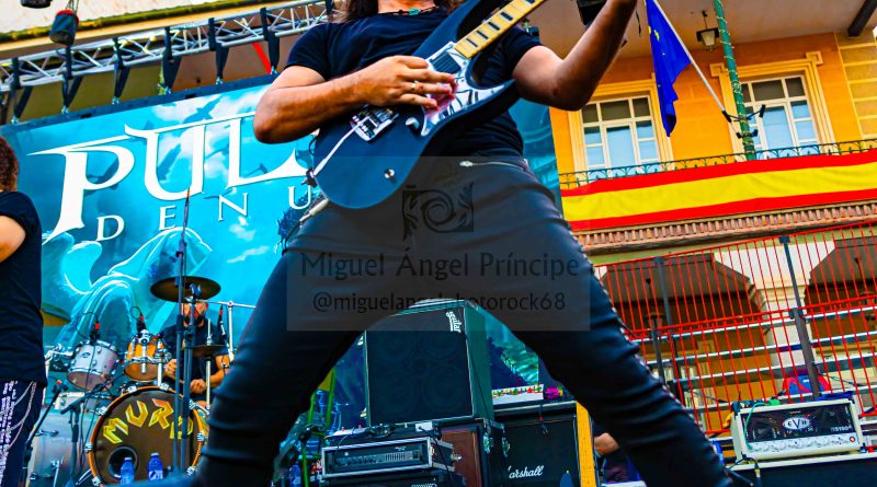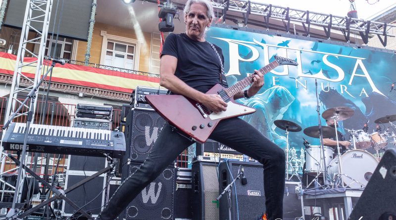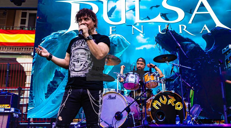 Antes de que fueran necesarias las luces del escenario, salían a escena los chicos de PULSA DENURA formación que apenas cuenta con un año de vida, pero formada por un elenco de reconocidos músicos al frente como son Manuel Escudero a la voz, José Pineda y Miguel Salvatierra a las guitarras, Rafael Vázquez al bajo y la presencia en esta ocasión de Pablo Casas, para remplazar en la batería a Antonio Pérez, que no pudo estar presente en esta ocasión. Excelente elección sin duda para ir calentando si cabe un poco más el ambiente con una plaza que a cada minuto venía tomando el color de las grandes ocasiones, sin llegar a ser agobiante pero con una más que notable asistencia, que ya empezó a vibrar desde esos primeros minutos con «Hijos del Viento» con una banda enchufada en todo momento que cuenta con la garantía de tener al frente una gran y versátil voz como es la de Manuel, que además nos permitió escuchar algunos clásicos de SAN TELMO, intercalados en el repertorio como «Pídeselo a Dios» o «Si Tú Quisieras» intercalados entre los temas propios de la banda, como «No hay Dolor» o «Detrás de Tu Verdad» tema aún inédito al que seguiría todo un clásico irrepetible de los británicos Black Sabbath «Heaven and Hell» finalizando con un nuevo tema de SAN TELMO «Junio del 44» tema para el que contaron con la participación de Ismael Filtheau a los teclados.