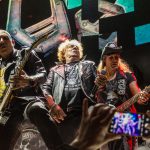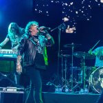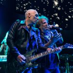 Una mínima pausa de apenas unos segundos, para meternos ya en los bises finales con «Otra Vez En La Ruta» a la que seguiría «A Pico y Pala» uno de los últimos temas compuestos por la banda, mientras sobre la pantalla se proyectaba el videoclip de la misma, confieso que me hubiera encantado que hubiera sido el primer tema de los bises y haber visto aparecer a Fortu y Paco con el pico y la pala sobre el hombro al igual que en el video. Ya plenamente metidos en la recta final llegaba una pequeña sorpresa Fernando Montesinos productor y ex bajista de la banda, tomaba el relevo a Luisma a las cuatro cuerdas para tocar junto a ellos «Pesadilla Nuclear» rematado por un rotundo No a la Guerra, y continuar para cerrar la noche remontándose a todo un clásico de los comienzos de la banda, «Solo lo Hago en Mi Moto» en cuyos acordes finales Fernando volvía a pasar el testigo a Luisma, para que este recogiera los merecidos aplausos. En resumen un gran concierto de Rock’n’roll de unos incombustibles, OBÚS, que lejos de tomarse un descanso tras finalizar la larga fila cuarenta aniversario, ya anuncian nuevos compromisos en directo mientras preparan un nuevo trabajo del que hace unos días nos presentaban un nuevo adelanto “Hasta La Última Estación”.