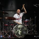 La tranquilidad duraba poco, ya que un auténtico mazazo como es «Juego Sucio» continuaba con la dosis de Heavy Metal de la noche, tras ella llegaba otro imprescindible del repertorio de la banda «Dinero, Dinero» tema aprovechado para hacernos cantar el ya clásico na,nara,na mientras se pedía a todos que encendieran las linternas de los móviles para moverlos de un lado a otro siguiendo sus instrucciones. La figura de Paco subida sobre la pequeña tarima central situada sobre el escenario arremetía el inconfundible riff inicial de «Va a Estallar el Obús» que sonaba 43 años después con la misma contundencia que el primer día. Se cumplía ya la hora larga de concierto y era el momento de presentar a la banda, con un pequeño solo por parte de cada uno de sus componentes empezando por Luisma, seguido de Carlos que se marcó como viene siendo habitual en él una gran solo de batería en cuya parte final Fortu tomaba el relevo sobre la misma y Carlos continuaba con su percusión, ahora sobre el centró del escenario usando en esta ocasión un par de banquetas, como improvisados timbales, antes de retomar a su puesto y dejar el protagonismo a Paco Laguna, que tras un pequeño punteo era el encargado de presentar a Fortu, y arrancar casi sin tregua con «Vamos Muy Bien» otro himno indiscutible de la banda incluido en ese gran tercer Lp que fue El que más y que si la memoria no me falla sobre estas fechas cumplirá los cuarenta años desde que viera la luz.
