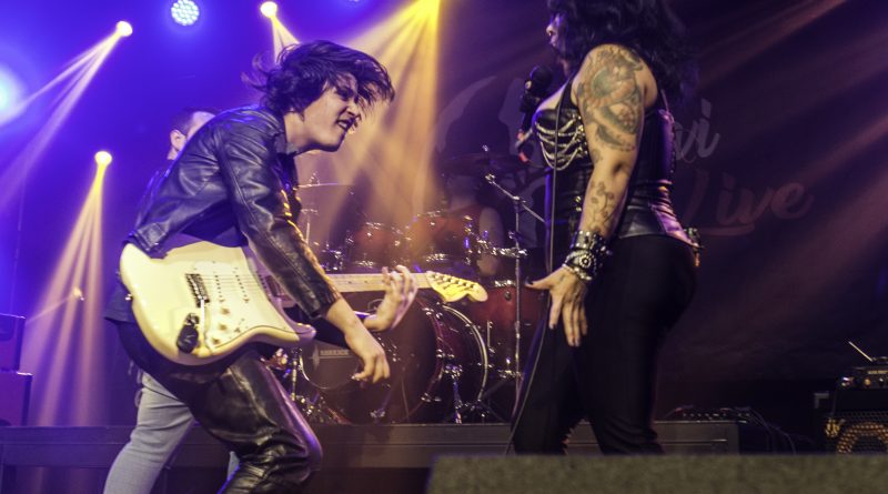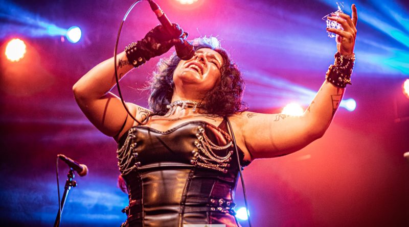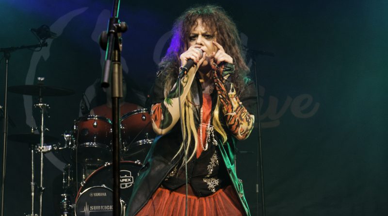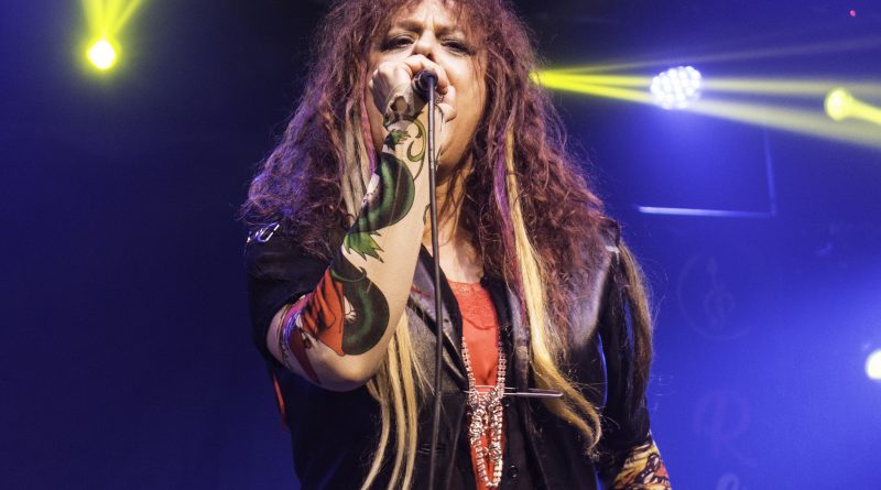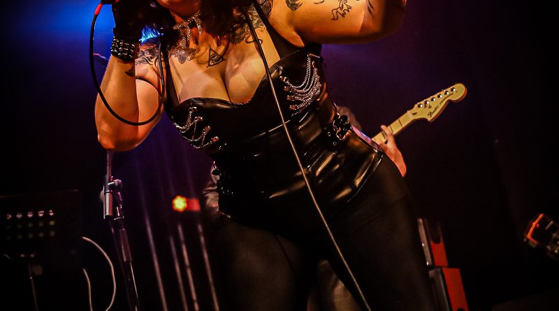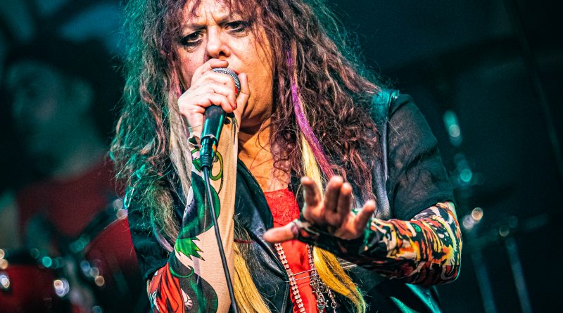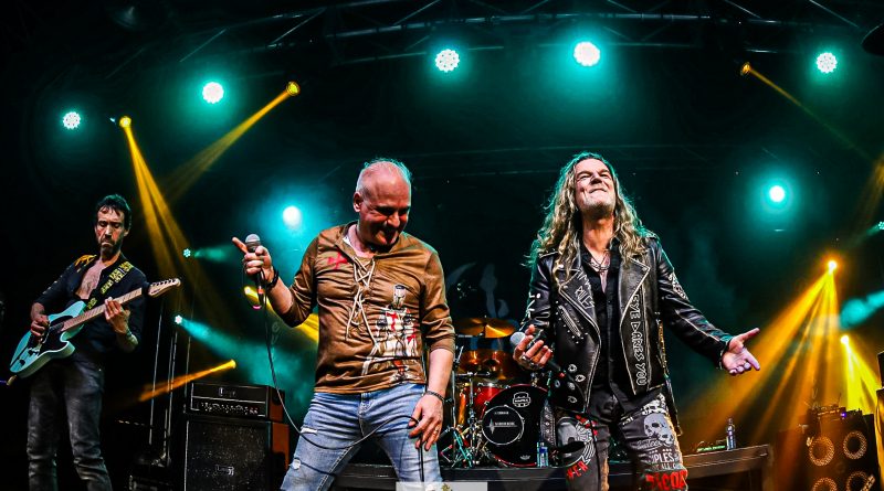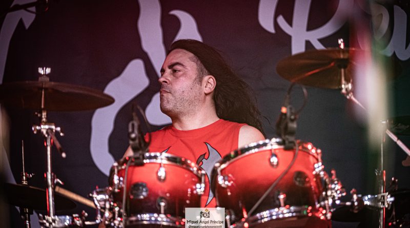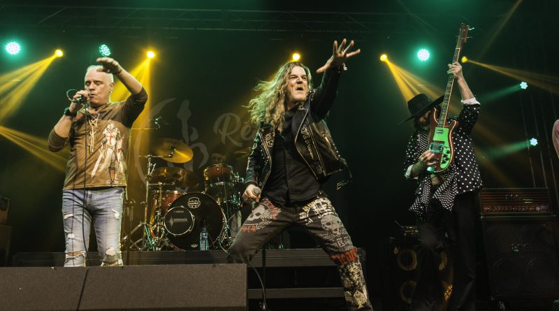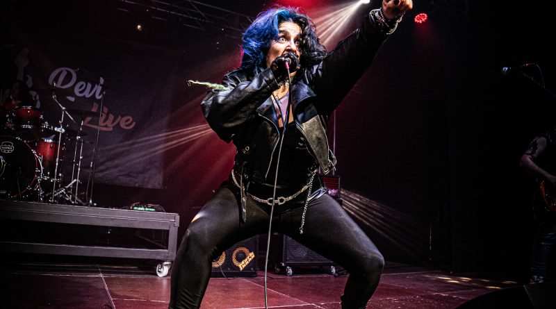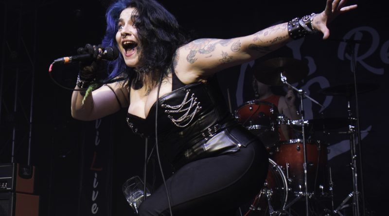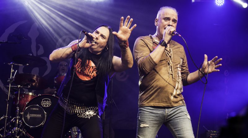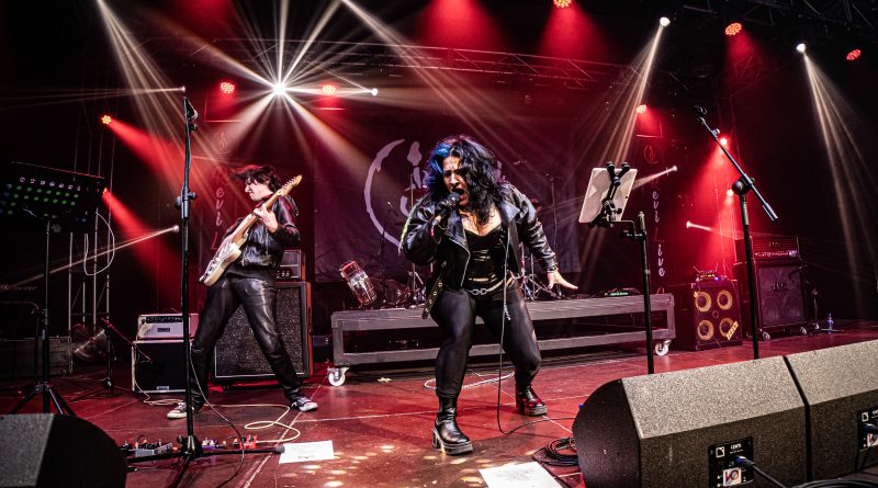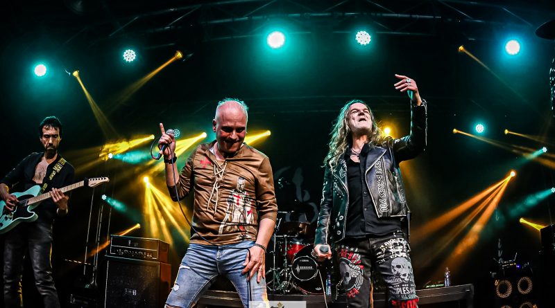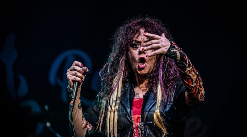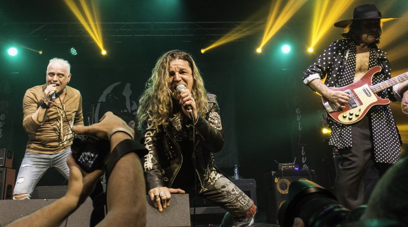 Por fin llegaba el momento en el que la luces se apagaban y entraban en escena SATAN, con un comienzo lleno de fuerza con Eva García, su vocalista blandiendo un látigo y entonando las primeras estrofas de «Desertor» con las que se me pusieron los pelos de punta, por que el enorme parecido de la voz de Eva con la de Azucena, me transportó durante unos momentos a muchos años atrás, en una de las múltiples ocasiones en las que tuve la fortuna de ver a SANTA en directo. sensación que se vio confirmada mientras sonaban temas como «Cuestión de honor», «Héroe de papel» o «Huérfanos de la tormenta» en las que no solo, pudimos comprobar las similitudes vocales, si no su carisma como front woman, todo ello acompañado por una banda solvente y potente formada por Robert al bajo, Ortega a la batería, un Rodri oculto tras sus teclados y un extraordinario Juan Diego a la guitarra.