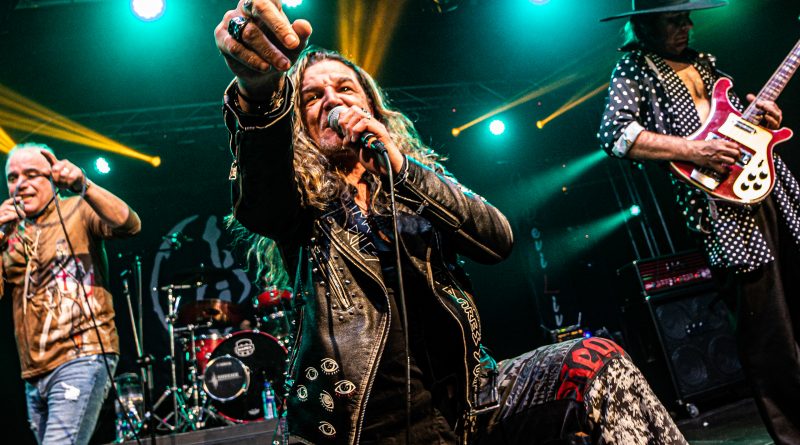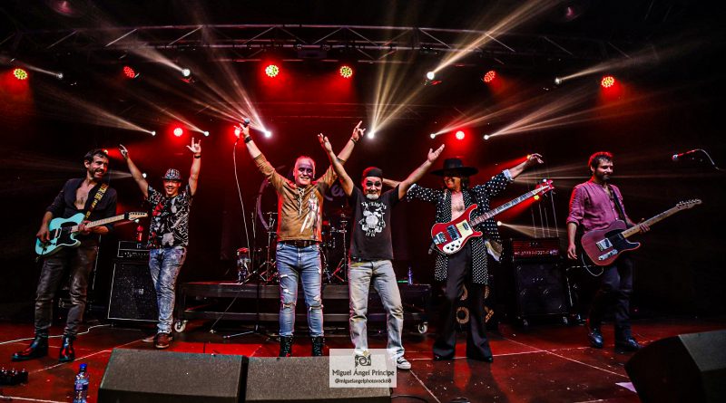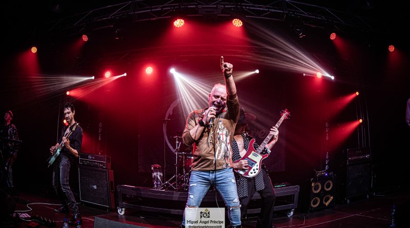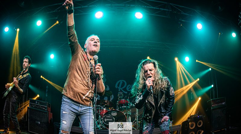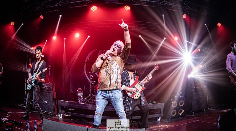 Arrancaban con «Shalom» su tema homónimo, comandados por Sebastián Guerrero, a la voz y Rubén Tamayo al bajo que se incorporaba a la banda en esta noche, los dos únicos miembros originales de la misma, acompañados por Koto Bermúdez y Carlos Armesto a las guitarras, Javier Santana en los teclados y Chico Palenzuela a la batería. para hacernos disfrutar de su música desde el primer instante, con temas como «Noches» «No me olvidaras» o «Sherezade» con la guitarra de Koto como protagonista del punteo inicial, o «Que es mejor» todas incluidas en su álbum homónimo y coreadas por un publico que se traía bien aprendida la lección y no dejaba de animar y aplaudir a la banda, tras ellas Sebas nos presentaba «El lunes aquel» tema que no se llego a incluir en ninguno de los discos de la banda, al cerrarles el sello discográfico las puertas, pero que si se encuentra incluido en la reedición remasterizada que acaban de sacar a la venta. «Solo en la niebla» medio tiempo que nos dejaba apreciar aún más, el perfecto estado de forma de la voz de Sebas, que no solo se ha mantenido a lo largo de los años si no que ha ido ganando en matices, al que le seguía un nuevo tema que no se grabo en su momento, pero si se ha incluido en esta nueva edición «Amargo sabe» pura marcha al más clásico estilo SHALOM.