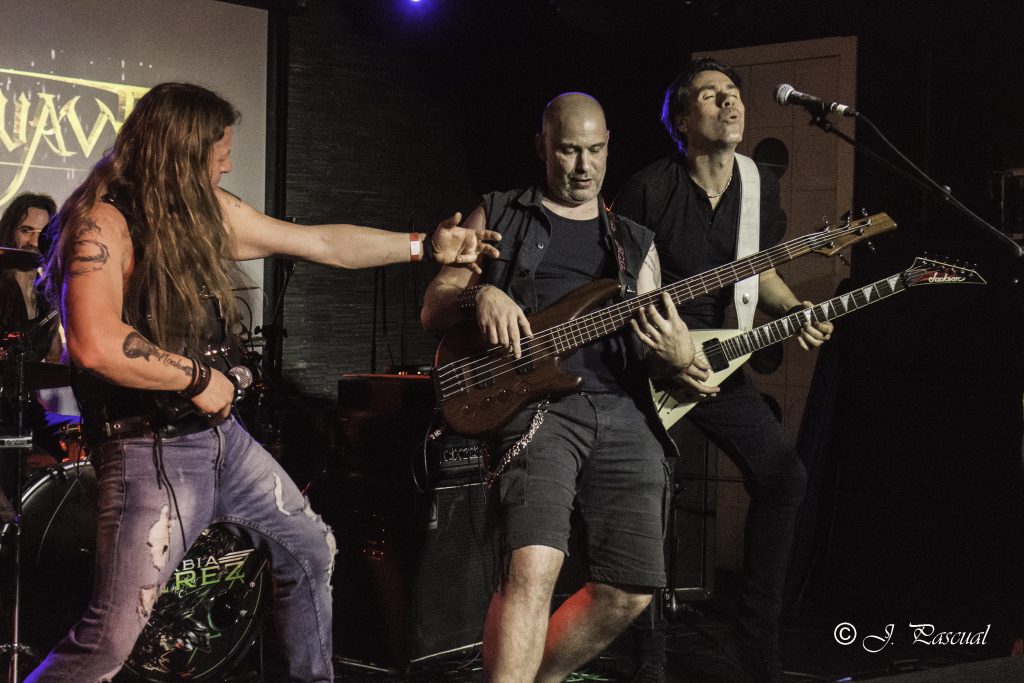 La segunda apuesta de la noche nos trasladaba a los sonidos más tradicionales del Heavy Metal, de la mano de BLAST WAVE. una intro pregrabada servía como punto de partida para arrancar con «Hasta el final» perfecta frase para indicarnos que eso era precisamente lo que nos íbamos a encontrar una buena dosis de  Heavy de corte Clásico con mucha carga melódica, a cargo del quinteto guipuzcoano, partiendo del despliegue de agudos de Jon Marcos, junto a los riffs de las guitarras de David Cabanillas e Iván Estévez y la potente base ritmica formada por David Cuadrado al bajo y Mikel Iragui en la batería.  La banda nos fue dejando una buena dosis de Heavy duro y veloz, con grandes estribillos que unidos a la complicidad y dotes de  Jon como frotman, y los riffs y punteos de David e Iván, nos hicieron vibrar con temas como «La verdad» o «Tras la tormenta» conectando en todo momento con el publico que disfruto e interactuó con la banda, para despedirse con «Renacer»  tema que dio nombre al que fuera primer trabajo de la banda.