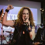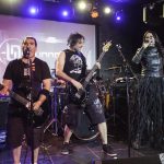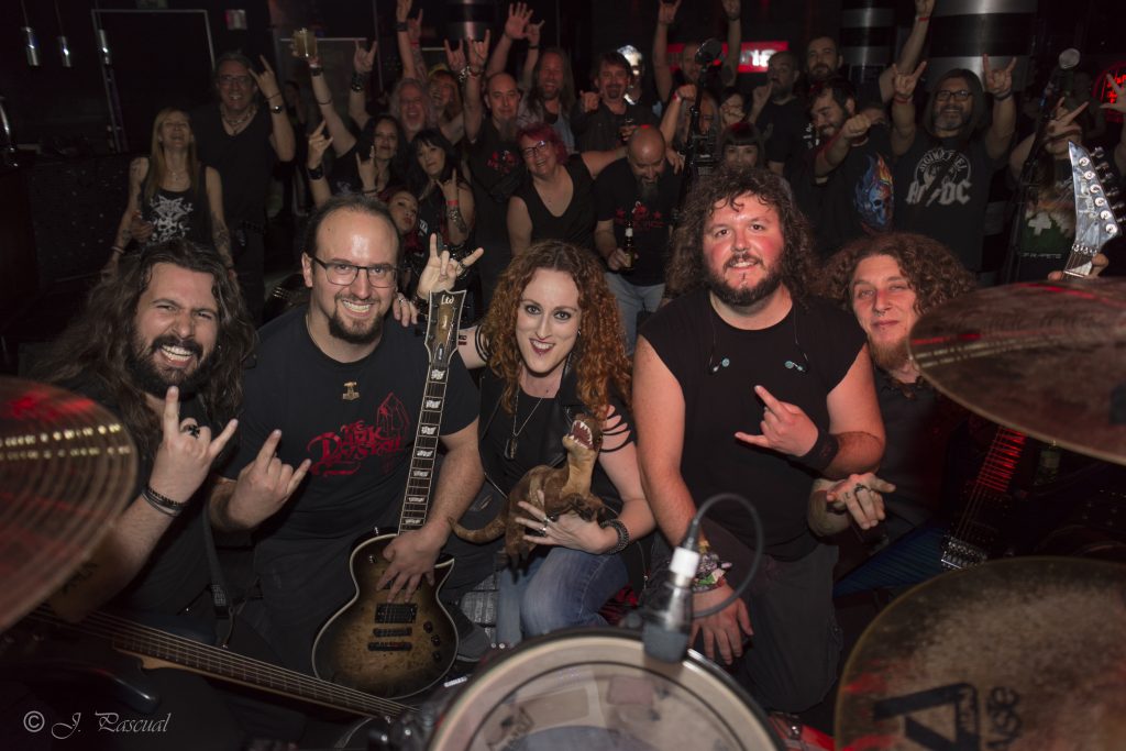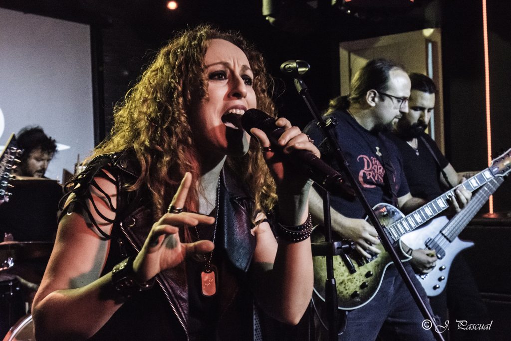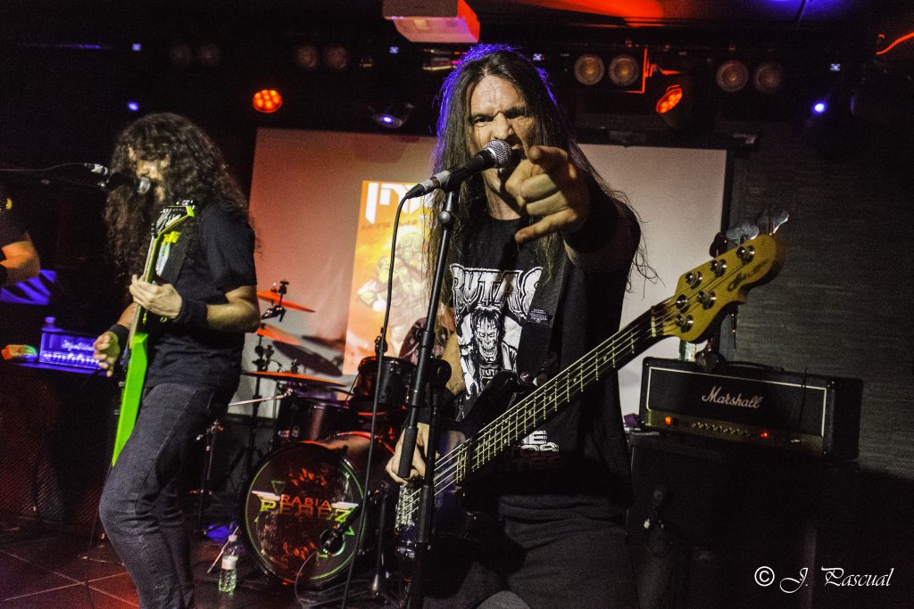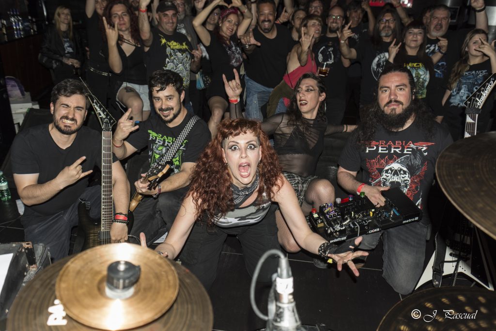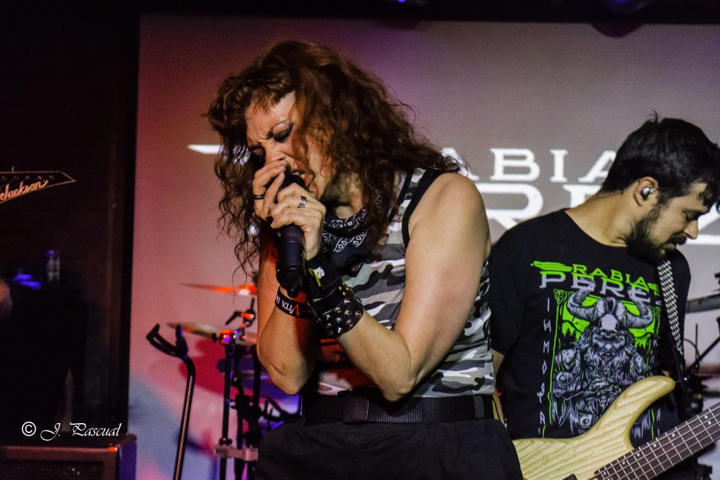 La penúltima banda en subirse al escenario fue RABIA PÉREZ, derrochando energía y carisma, tal y como nos tienen acostumbrados con Fátima Pérez como cabeza visible de ese desparpajo que gastan los madrileños en todos sus conciertos y que hacen que acudir a uno de ellos sea siempre una garantía de que vas a pasártelo bien.  Gabriel Peñasco y Víctor Guerrero  nos hicieran notar con toda su contundencia sus Riffs de guitarra, mientras Toni Torres al bajo y Paris Lakryma a la batería marcaban el ritmo de un concierto y como no Fátima a la voz, bordando tanto las partes más melódicas como los guturales, y ejerciendo de maestra de ceremonias para presentar cada tema y mantener animado al personal en cada momento.  para hacernos disfrutar con temas como  «Sueño virtual» o «Soldado de honor»  sin olvidar el compromiso y el mensaje profundo de sus letras.  En «Última etapa» Víctor rompió una de sus cuerdas durante la interpretación del mismo, mientras efectuaba el cambio de la misma Fátima aprovechaba para presentar a la banda y ir contando anécdotas para mantener la atención, antes de ya con Victor de nuevo sobre el escenario interpretar «El ritual de las almas» como tema final, ya que los horarios corrían y el contratiempo les obligo a tener que recortar el set list previsto.