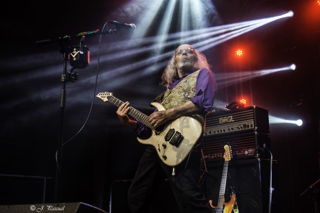 La siguiente banda, he de reconocer que era una de las principales razones por la que me apetecía el concierto de esta noche, ya que a pesar de sus más de cuarenta años de historia y haber escuchado en infinidad de ocasiones su temas, nunca había tenido la oportunidad de verles en directo, hablo de BADANA, la banda liderada por Luís Miguel Rico, compositor y miembro fundador de la misma a la guitarra, la voz y la armónica, acompañado por Rubén al bajo que no solo se desenvolvía a la perfección con las cuatro cuerda si no que aporto un extra de actitud sobre el escenario y un genial Sergio Pérez a la batería, arrancaban con «Romper el cascarón» que enlazaba sin descanso con «Era diciembre» para continuar sin tregua la descarga de temas icónicos de la la banda que forma parte de la historia del rock de este país, aunque el impacto mediático de la misma nunca ha estado a la altura de su calidad, como atestiguan temas como «Animal» o «Centinelas de la noche», si hay algo que siempre me ha fascinado de los power trios como BADANA es la potencia que son capaces de dar a sus temas y un buen ejemplo seria otro de los temas de la noche «Y nosotros aquí» que dio paso a un momento más sosegado con «Días de escuela» en la que Rubén cambiaba el bajo por la guitarra y Sergio la batería por la pandereta para interpretar a tres voces y con Luís Miguel intercalando guitarra y armónica para interpretar esta bella balada. «El dictador» retomaba la caña para continuar con la irónica «Parecían tontas», al que le daba continuación «Naufragio» ese magnifico tema instrumental del año 1990 que pasa de los pasajes más acústicos de su tramo inicial a el más puro y potente Heavy metal,