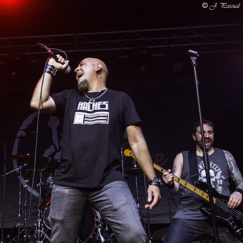 HACHES, los chicos de Hortaleza tomaban posiciones en el escenario al ritmo de la banda sonora de Regreso al futuro, que les servía de intro, para dar comienzo con «Eres» a un cerca de una hora de Rock directo, potente y cañero, con tres guitarras sobre el escenario, Rubén Ortiz, Daniel Pereira y Manuel de la Fuente, Marcial Ortiz a la voz y en la base ritmica Daniel Fernández al bajo y Jorge Utrera a las baquetas. «Eres» y «Las mentiras» daban comienzo al concierto derrochando energía, que pronto se contagio al publico asistente, en la que puede que fuera una de las actuaciones con mayor afluencia del mismo. apenas un escueto buenas noches Madrid para arrancar con el segundo tema de la noche «Las mentiras» tema incluido en el segundo y último trabajo de la banda La Vida Que Nos Pasa, que ha visto la luz a finales del pasado mes de noviembre. continuaba la noche con temas cargado de energía y buen rollo aires ochenteros, estribillos pegadizos y buenos riffs de guitarra como «Mi camino» o «Dibujando corazones». La parte más solidaria y comprometida de la banda llegaba con «Al lado» tema dedicado a Alex un pequeño con PCI (parálisis cerebral infantil), al que la banda destina la mitad de los beneficios de la venta de su primer LP Canciones para ti para ayudar en su tratamiento. Como no destacar «Aún arde Hortaleza» dedicada a sus vecinos y amigos PORRETAS y que a muchos nos hizo recordar, muchos momentos vividos allá por los años ochenta, las versiones más al uso también estuvieron presentes con «Hay poco Rock’n’Roll» de PLATERO Y YO o el tema final «Vamos muy bien» de OBUS, no sin antes citarnos a todos para la presentación oficial de su último disco para el veinticuatro de febrero.