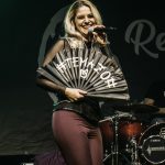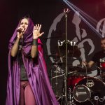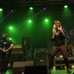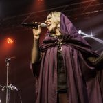 UNNAMED puede que fueran los más perjudicados al unirse la escasa afluencia con el horario de comienzo previsto a las cinco y media de la tarde, pero lejos de desanimarse salieron dispuestos a darlo todo, Con Vero ataviada con una túnica morada para interpretar «Oscuridad» el tema que da nombre a su primer LP (Abro un breve paréntesis para contaros a todos los seguidores de la banda, que en estos días se encuentran grabando el que será su segundo LP, del que pronto esperamos poderos contar más cosas). Como es habitual en ellos pudimos disfrutar a lo largo de los nueve temas que componían el setlist de un sonido potente con aires frescos y actuales, rock cañero con ciertos toques progresivos y de nü metal donde la guitarra y los guturales de Alberto Calvo (Tito) se ven reforzados por la guitarra de Alfi la última incorporación a la banda, junto con el bajo constante de Manuel Velasco y la batería contundente de Rafa Ruiz, todos ellos unidos a la magnifica voz de Vero que me sigue asombrando cada vez que la escucho con esa facilidad suya en parar de los sonidos más liricos a los guturales sin apenas esfuerzo aparente. Sin olvidarnos de la parte más teatral que la banda domina a la perfección con momentos como en «Mi invocación» envueltos en la oscuridad y con todos ellos cubiertos con unas mascaras, o el presentar la única versión de la noche «Enjoy the silence» enarbolando un abanico en el que se podía leer Temazo, sin olvidarnos de las continuas interacciones con el publico tanto desde encima del escenario como bajando a cantar entre el mismo.