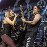 Tras una breve pausa, para efectuar el cambio de equipo llegaba el turno de los sevillanos SILVERANTO, que abrían con «On the road» el que fuera el primer single de la banda publicado a primeros del 2020. Para aquellos que no conozcan la banda quizás la mejor definición de lo que se van a encontrar sobre el escenario es una mezcla de aptitud y contundencia con sonidos y estética muy en la línea del Hard rock más ochentero, cantando en ingles. El grupo esta compuesto por FJ Kubero a la guitarra y la voz, a la par que un magnifico frontman que no paro un momento quieto sobre el escenario, tal vez por esa razón en lugar de optar por un micrófono al uso opto por un micro tipo diadema, acompañándole a la otra guitarra no encontramos con todo un virtuoso de la seis cuerdas Josemi Cassani y en la base ritmica Francisco Campos al bajo y Julián Martín a la batería. dejándonos regalos como «No money» tema trallero muy al estilo de los mejores momentos de MÖTLEY CRÜE, versiones como el clásico «Crazy train» de OZZY OSBOURNE, que precedía a su último single «Tears have gone away», balada que en palabras de la propia banda es un homenaje a todas las luchadoras que un día dijeron NO y continuaron adelante dejando todo lo oscuro atrás. El punto final lo puso el clásico de JUDAS PRIEST «Living after midninght» para terminar con todos los asistentes cantando junto a la banda.