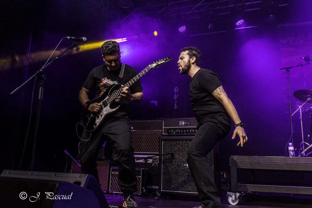 HAERESIAN la banda de Ciudad Real, era los encargados de la siempre difícil misión cuando se trata de festivales o conciertos con bastantes bandas de conectar con un público que en estos primeros instantes suele ser bastante escaso y llega aún bastante frio, tarea que superaron a lo largo de los nueve temas que compusieron su descarga. La parte instrumental de la banda arrancaba con «Overture Fatale» para apenas unos segundos después incorporase ya Juan Ramón a la voz sobre las tablas, junto con el resto de sus compañeros, Héctor a la guitarra, David a la batería y Pedro al bajo, que suplía para la ocasión a Javier su bajista habitual, y atacar prácticamente sin pausa «Destino Final» tema incluido en Haresiano (2017) para retrotraerse a continuación a sus comienzos con «Odiseo» incluido en Dios de Metal (2010) alternando temas de ambos trabajos, con un par de versiones «Emerald Sword» de los italianos RHAPSODY OF FIRE en los que Juanra dejo una buena muestra de su capacidad vocal, y «We Rock» de Dio que dio el punto y final a su participación.