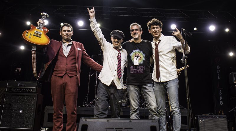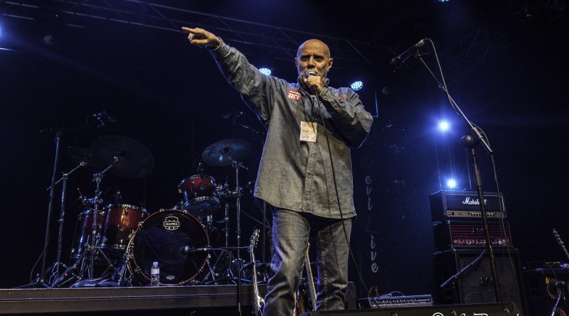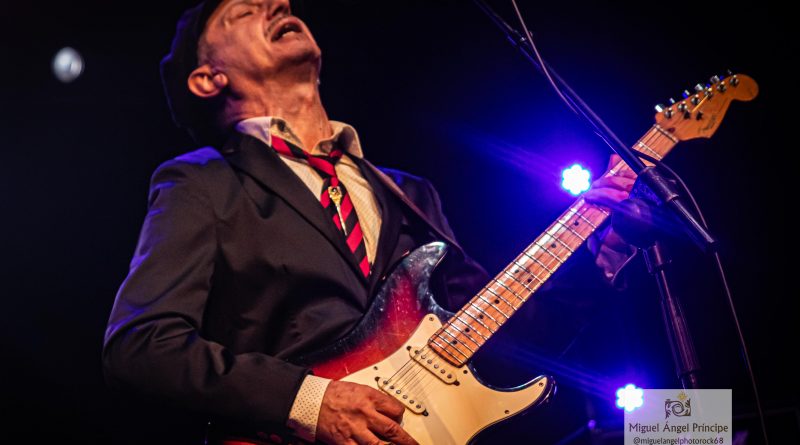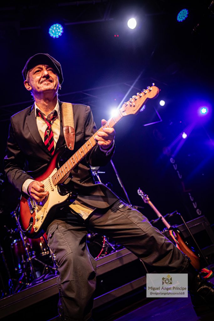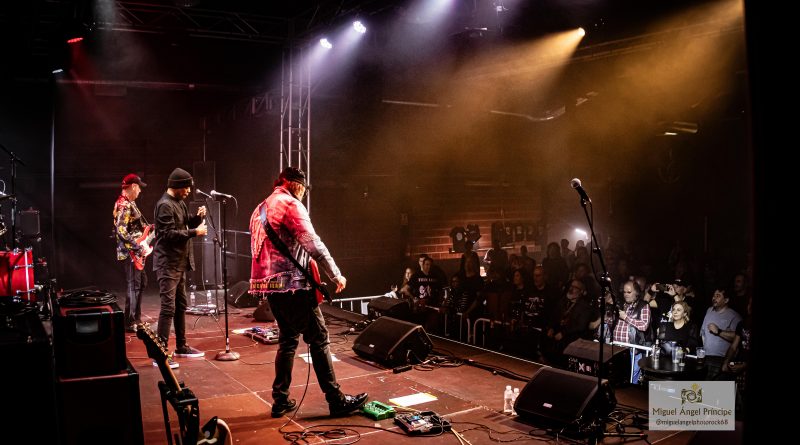Paco Madrid subía al escenario para presentar a los siguientes protagonistas de la noche LUIS CRUZ Y LA FURGOBAND, banda capitaneada por Luis Cruz uno de los grandes guitarristas de nuestro país, al que acompañan Pedro Navarro a la batería, Luis Rodrigo a la guitarra y los coros y Niko Irelan al bajo. Arrancaban de modo puramente instrumental con «Gallega, Celta y Meiga» una perfecta fusión entre Rock progresivo y Folk, para llevarnos «Con la Música a Otra Parte» a terrenos mas Hard, con esa increíble capacidad que tiene Luis de moverse dentro de diferentes estilos dentro del Rock y el Blues, pero siempre manteniendo una seña de identidad propia, como pudimos constatar a lo largo de la noche con temas como «Rocker», «Nos Gusta la Gente» o «Magia Pura» con un Luis increíble en la voz. No podía faltar tampoco en el ecuador de su actuación una de las canciones más queridas por los amantes del Rock en nuestro país «Mis Amigos Donde Estarán» tema de TOPO banda en la que Luis lleva militando desde 1986, para volver a retomar la senda de los temas propios con «Valentina» o «Silencio» con un maravilloso solo de guitarra, que nos llevaba al final que arrancaba «Mi Guitarra y Yo» un sentido homenaje musical que incluye pequeñas pinceladas de muchos de esos temas clásicos e inolvidables dentro del Rock, en la que Luis aprovecho para hacernos cantar un poco, algo que continuaríamos haciendo con «Bartolo» que ponía el punto final, dejándonos con ganas de haber podido disfrutar un poco más de ellos, aunque con la certeza de que pronto tendremos ocasión de hacerlo nuevamente.