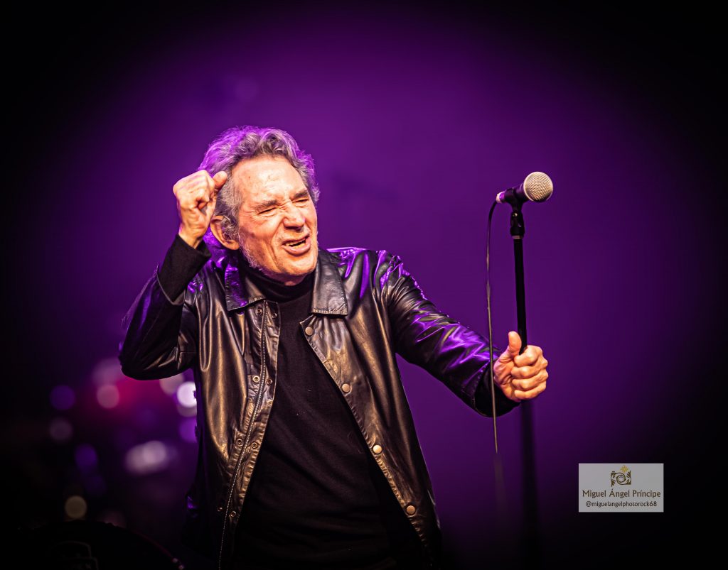 Se cumplía ya la hora de concierto cuando llegaba, uno de los momentos más esperados, cuando Javier presentaba a los dos invitados de la noche, encabezados por toda un leyenda del Rock patrio como es Miguel Ríos junto con el gran guitarrista John Parsons, «Popotitos» fue el primer tema escogido, con un Miguel que se mostraba en plena forma y bromeaba con el hecho que por fin podíamos cantar algún tema en castellano, el tema de Moris «Sábado en la Noche» con Miguel demostrando sus grandes dotes de frontman, al que bastaron un par de temas para meterse a todo el público en el bolsillo y poner a cantar y bailar hasta a el más tranquilo de la sala. para retirarse entre una gran ovación. «Someone Steeping in Blues» y «Blues Pilgrimage» nos acercaban a final de la noche, que aún se vería coronada por un par de temas extras ante la insistencia del público.
