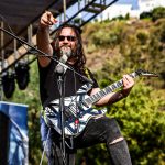 Los primeros acordes de «Mask Of Reality» comenzaron a sonar bajo un sol de justicia y con ellos Pineda se situó en la primera línea del escenario jaleando al personal que le respondió con aplausos y manos en alto. Con este recuerdo a su álbum Ultimate Sin ya empezaron también los primeros solos de guitarra que adornaron con elegancia una base rítmica de corte melódico sólo roto por los imparables graves impuestos por Cosmin, los cuales compensaron a la perfección la acompasada base de sus compañeros. «War Machine» y «The Evil Dead» nos introdujeron de lleno en su segundo trabajo de nombre Evil Must Die con temas de bajo potente que fue creciendo en intensidad en el primero para ceder cierto protagonismo a las seis cuerdas de corte más Hard que pudimos disfrutar en el segundo antes de despacharse con «Ultimate Sin», canción tras la cual entró en juego el bombo atronador de la batería que facilitó la introducción de un «Shadow Warriors» con absoluto lucimiento de punteos a cargo de Justi, lo que provocó aplausos incontestables entre el público para volver de nuevo a un salvaje sólo de batería que siguió a «Demon In Your Mind», facilitando a Bala cambiar a otra guitarra que manejó a su antojo en una versión del «Painkiller» muy aclamada por el respetable.
