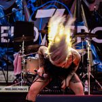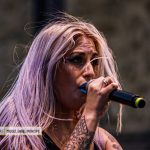 LEVEDAD ZERO llegó para demostrar por todo lo alto que el Metal de las tierras andaluzas está más vivo que nunca, hecho sobre el que no quedó ninguna duda gracias a una actuación de alto nivel musical e instrumental por no hablar de la vibrante voz de la frontwoman de la banda, quien gestionó con igual potencia, solidez y brillo tanto los temas con letras en inglés como los interpretados en castellano. La actuación comenzó con su logo a modo de telón cubriendo la espalda del batería y con un cielo aún iluminado por el sol mientras los primeros acordes de una Intro comenzaron a sonar y la alineación se fue instalando en el escenario para arrancar sin más dilación con el tema «Enjoy The Silence», una canción de los británicos DEPECHE MODE que abrió las puertas a la aparición sobre las tablas de la cantante con una performance a modo de máscara veneciana, incrementando el misterio que ya por sí mismo destila el tema que la banda se llevó perfectamente a un terreno más melódico sin olvidar los matices noventeros que el cuarteto le infundió en origen.