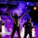 VHÄLDEMAR incendió la noche conquistándola con Pedro J. Monge a la guitarra y los coros, Jonkol Tera a los teclados, Jandro a la batería, Carlos Escudero a la voz y Edu Martínez al bajo (en esta ocasión no estuvo Raúl Serrano), un quinteto que literalmente se metió al público en el bolsillo tanto con las canciones que recuperaron de anteriores trabajos como el Against All Kings de 2017 y gracias a «Metalizer» o «Howling At The Moon», como a temas extraídos de su último disco editado en 2020 bajo el título de Straight To Hell, un trabajo compuesto por diez pistas que acarician de forma contundente el Metal alemán de unos primeros e incipientes HELLOWEEN hasta llegar a cortes más clásicos cercanos a ACCEPT con interpretación sublime en cuanto al sonido se refiere de la estratosférica «Death To The Wizard» de ritmo firme con la que ya empezaron a preparar a la gente para la descarga que se les venía encima de la mano de un magistral Monge en estado de gracia, quien tocó de forma embravecida su guitarra de frente, de espalda, a derecha e izquierda llegando a romper varias cuerdas en plena furia de muñeca con riffs imparables aderezados por las distintas tonalidades del bajo de Raúl y el incontestable baqueteo de Jandro