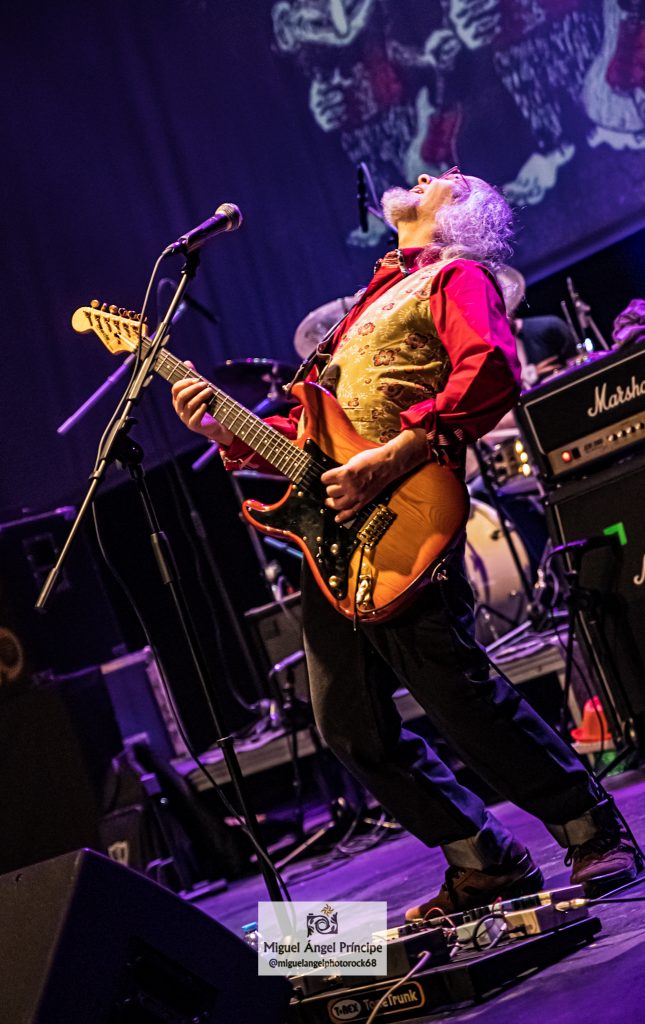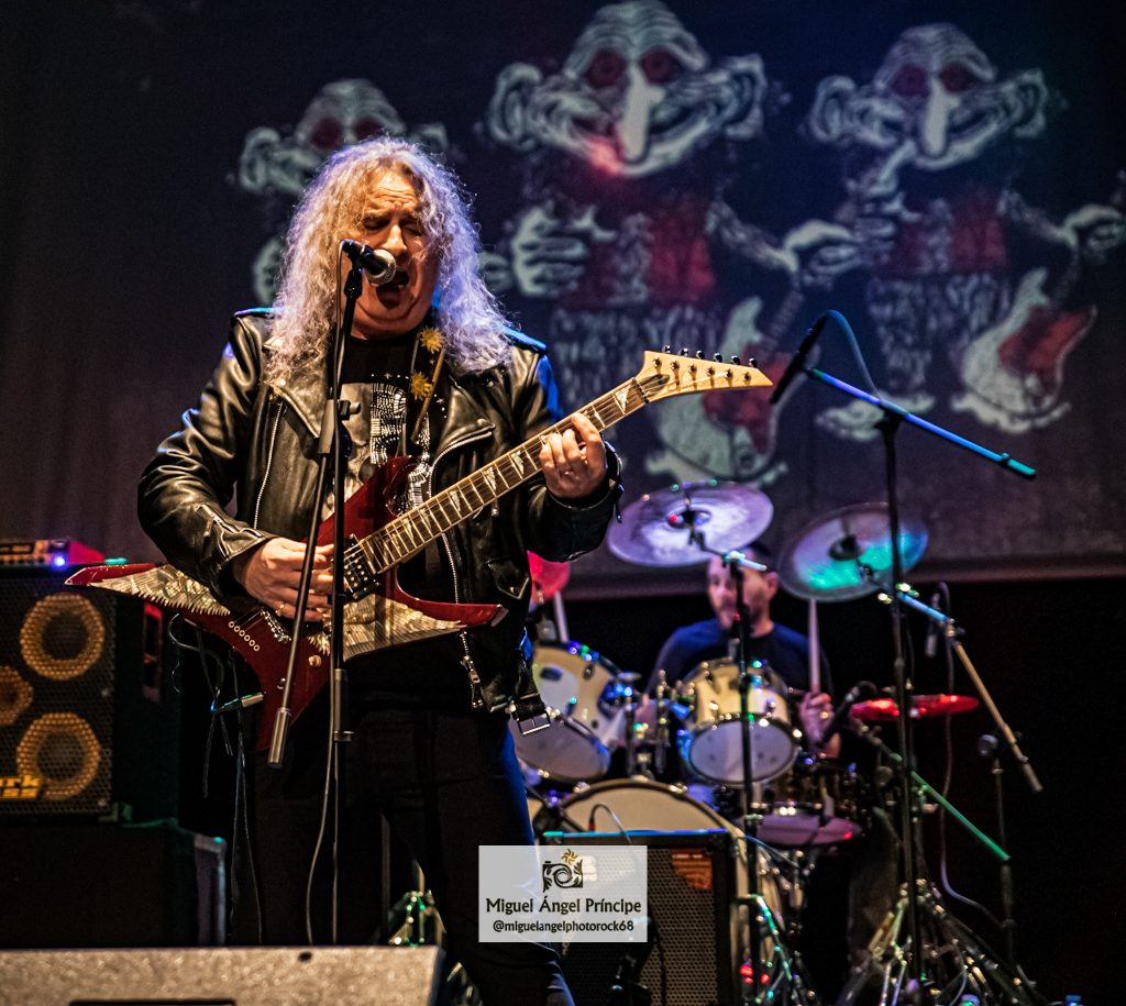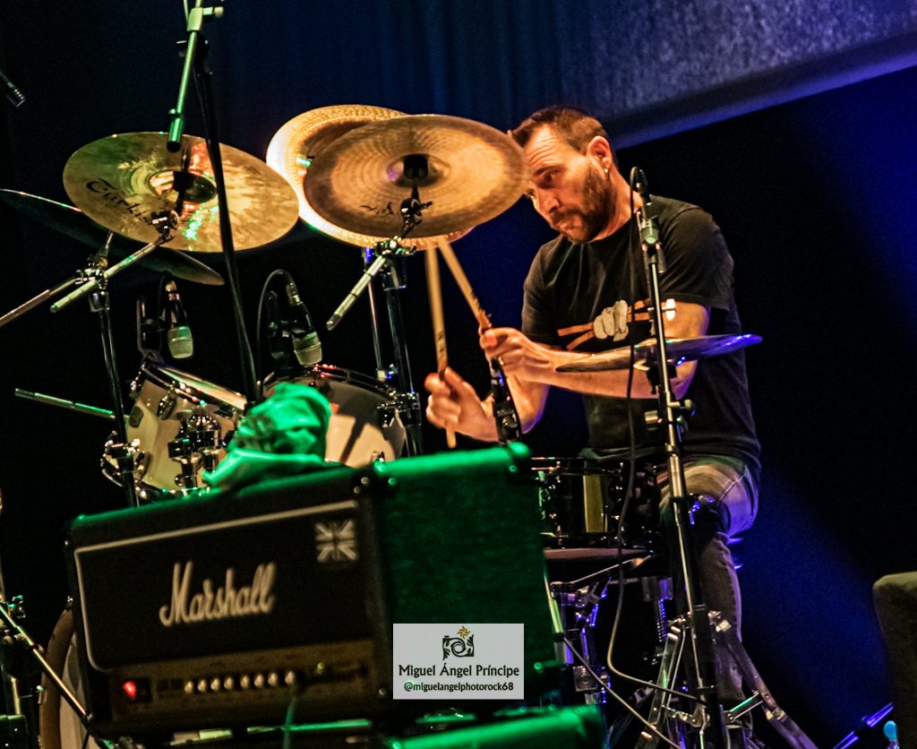 Con «Divagando» nos metimos de lleno en su última publicación de estudio Irvandal con un sonido fresco al mismo tiempo que reconocible y unos arreglos dignos de mención, muy centrados en cambios de ritmo elegantes en los que se aprecia la compenetración de los tres miembros y el ensayo de unas composiciones muy bien gestionadas en tiempo y con enlace perfecto de los ritmos que cada uno gestiona, poniendo de manifiesto la consolidación de esta formación que ha tenido muchos cambios en sus filas a lo largo de su dilatada trayectoria y que parece haber encontrado el engranaje definitivo para dar cuerpo a sus temas siempre aferrándose a un estilo casi en vías de extinción muy amigo de las melodías, tal y como quedó también patente con la siguiente «Centinelas De La Noche», una canción muy bien acogida por el público que aplaudió y coreo la misma devolviendo en todo momento esa química desplegada sobre todo por Rico, quien estableció desde el primer momento un feedback con el respetable creando un clima de amigos disfrutando de un directo que mezcló energía y sensación de estar en familia.