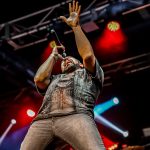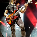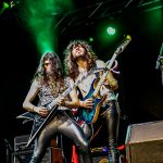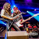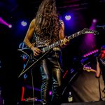 INVADERS no dejó de sorprender con temas muy recientes en su historia como «Endless Wait», una canción que cuenta con su propio videoclip editado recientemente https://youtu.be/8BG4ZC8-Wx4 en la que se pudo apreciar a la perfección los slaps que propinaba al bajo Sergio García, el miembro más joven de la formación y que también ostenta el honor de ser una pieza clave en la cadencia de los ritmos y juegos de tiempo que protagoniza el grupo, ya que su efectista forma de tocar empasta con su actitud sobre la escena moviendo continuamente la misma y desmarcándose de su sitio para situarse con seguridad en el centro de la arena, dando así mimbres a la misma en los momentos en los que Chamoso paraba su chorro de voz para situarse frente al batería siguiendo el juego a sus enloquecidos palos, unos palos que se marcaron un solo sin titubeos, vigoroso y con un ritmo que levantó las palmas de los allí presentes siguiendo sus imparables golpes antes de que la despedida llegase con «Hijos Del Metal», el único tema en castellano con el que por ahora cuenta la banda y con el que pusieron el broche de oro a más de una hora de dorado Heavy Metal clásico, imparable e incontestable.
