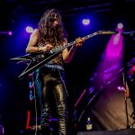 Los de Alcorcón se presentaron ante sus seguidores con un set de diez temas tocados de forma íntegra sobre un escenario que acogió a la banda con calor, aplausos y entusiasmo, un respetable preparado para la tralla cargada de buen gusto que se avecinaba con canciones centradas en su ya conocidísimo E.P. como «Metal Madness», la cual da título al mismo y que fue intercalada con otras que conformarán su próximo L.P. el cual probablemente verá la luz en el primer trimestre del próximo 2022 con cañonazos como «Living In The End», «Redhead Lady» y «Late To Return», todas ellas redondeadas por una inmejorable versión del «Hell Bent For Leather» de JUDAS PRIEST e interpretadas por la personal voz de Chamoso, una garganta llena de matices centrados en los tonos graves que elevaba a capricho para dar forma a la materia prima que le facilitaban sus compañeros a los cuales se acercaba irremediablemente para apoyar, bien sus punteos en las cuerdas de acero, bien los baquetazos que como fuegos artificiales sonaban sobre el cuero de los bombos de Adrián Rica.