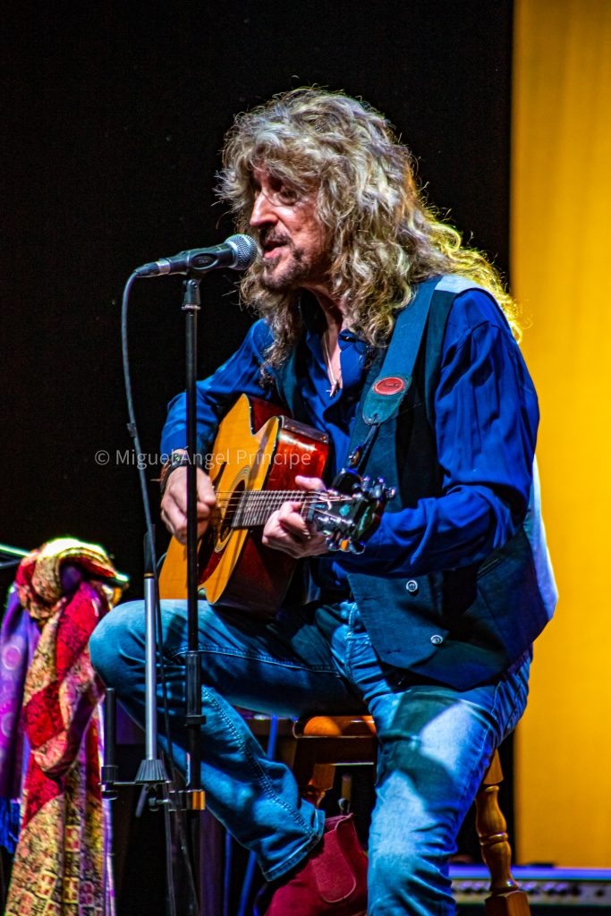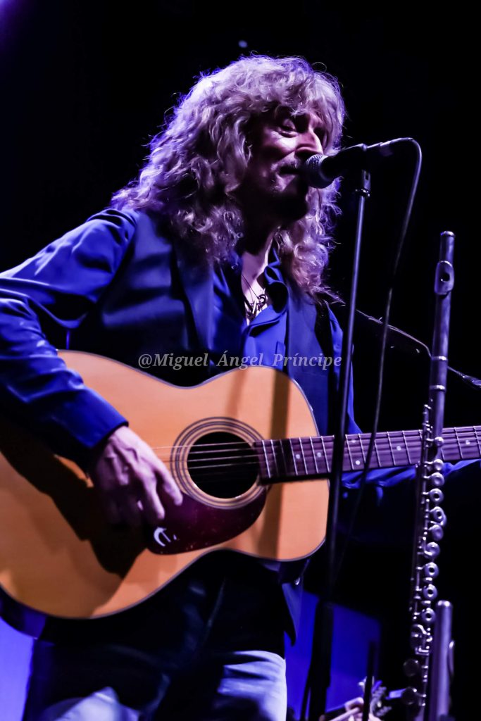 Entre canción y canción hubo bastantes bromas y un importante feedback entre el cantante y la gente, la cual respondió a los comentarios del artista con las manos en alto, aplausos y algunas frases divertidas para seguir el tono distendido que se mantuvo durante toda la actuación. Su aparición inicial con la guitarra acústica sentado dio paso a un cambio de ubicación al acoplarse delante de los teclados para interpretar «Conduciendo», una canción con la que comenzó a elevarse el tono de la tarde y que puso de manifiesto la calidad del sonido perfecto y nítido, algo que fue constante durante toda la actuación al igual que los ritmos marcados que ejecutaron el resto de los músicos, acompañando sin fisuras a esas cadencias que tanto flauta como armónica y piano requieren para hacer así gala de una impecable compenetración y preparación armónica.