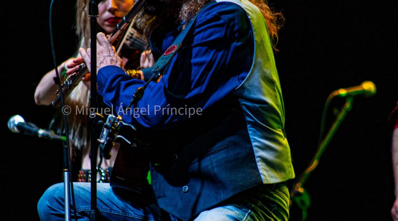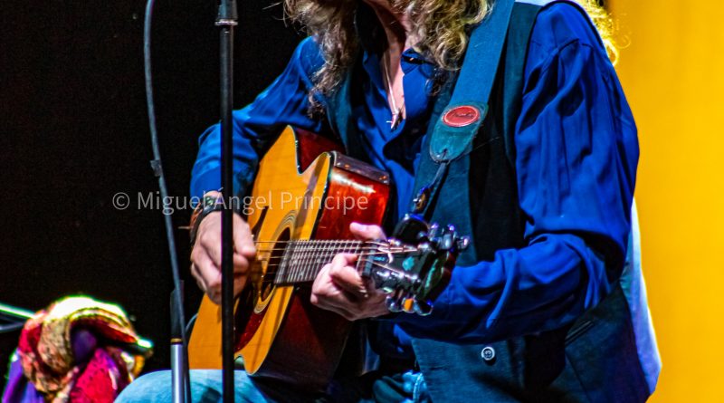 «La Fuente Negra» fue el tema elegido para comenzar el espectáculo, una melodía de nueva producción que el cantante desgranó sentando en un taburete alto con la guitarra acústica, instrumento al que se aferró en varias ocasiones cuando entre sus manos no se encontraban ni la armónica, ni la flauta, la pandereta o los teclados, ya que durante toda la tarde pudimos deleitarnos con un continuo intercambio instrumental que hizo más cautivadora la actuación, pues la riqueza musical que todos ellos aportaron no dejó parar ni un momento las palmas de un respetable más que entregado que vivió como nunca el sin duda esperado evento. Esta primera canción nos pareció una leve señal de lo que el nuevo álbum puede traernos, ya que saboreamos ritmos y composiciones más centradas en el «tú a tú» que buscaron la distancia corta con interesantes aportaciones tanto de la armónica como de las seis cuerdas acústicas.